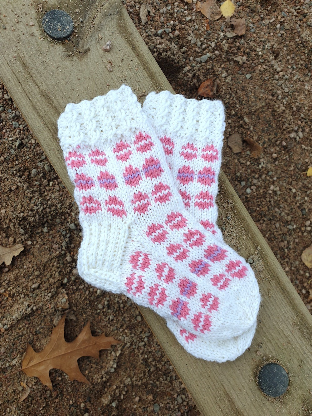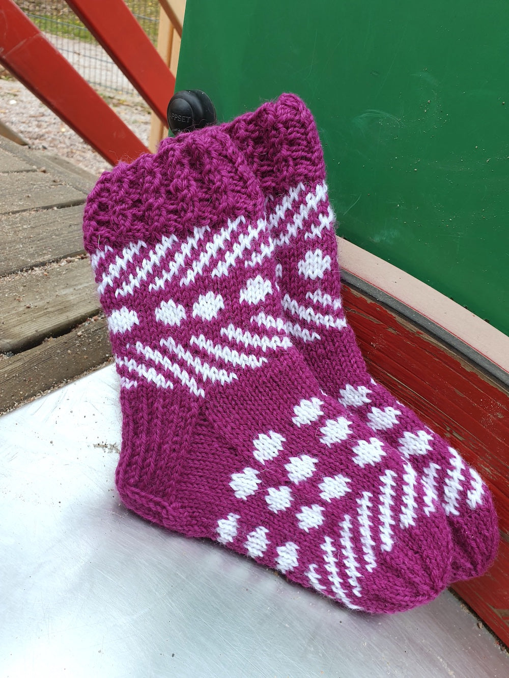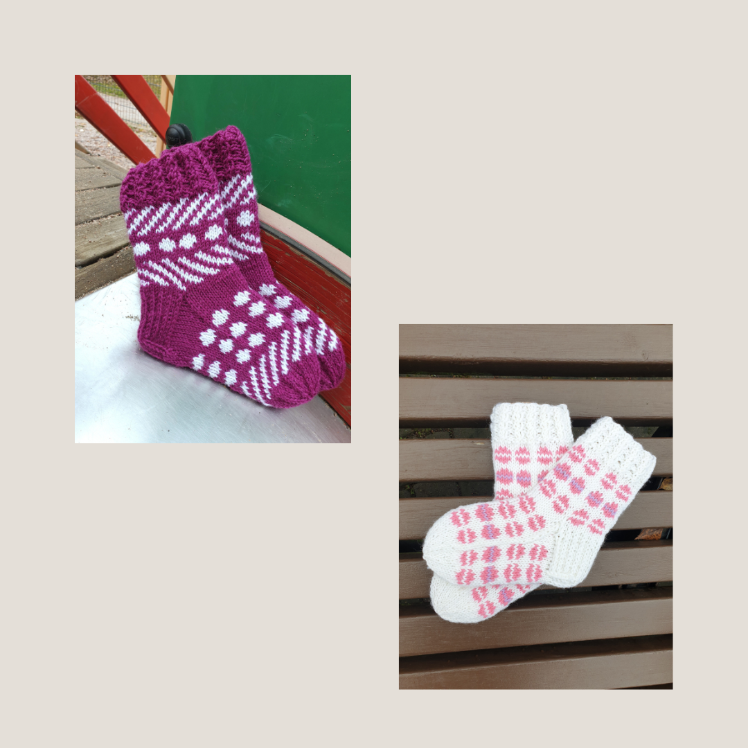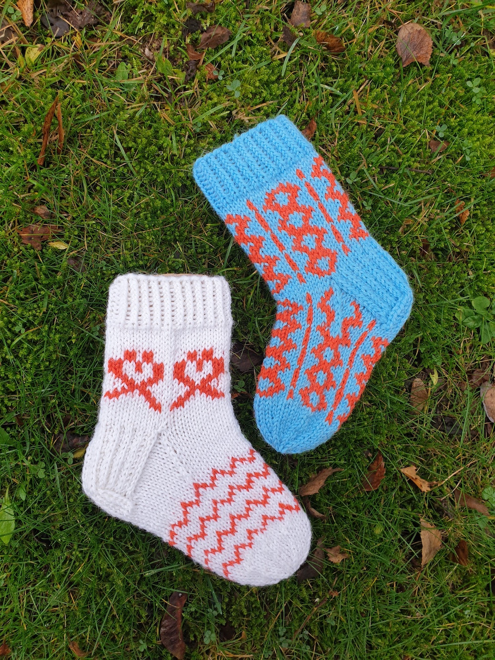 5 x kirjoneulesukat lapsille, ekirja / ohjepaketti (kuvat: Maarit O, @sweetsandsocks)