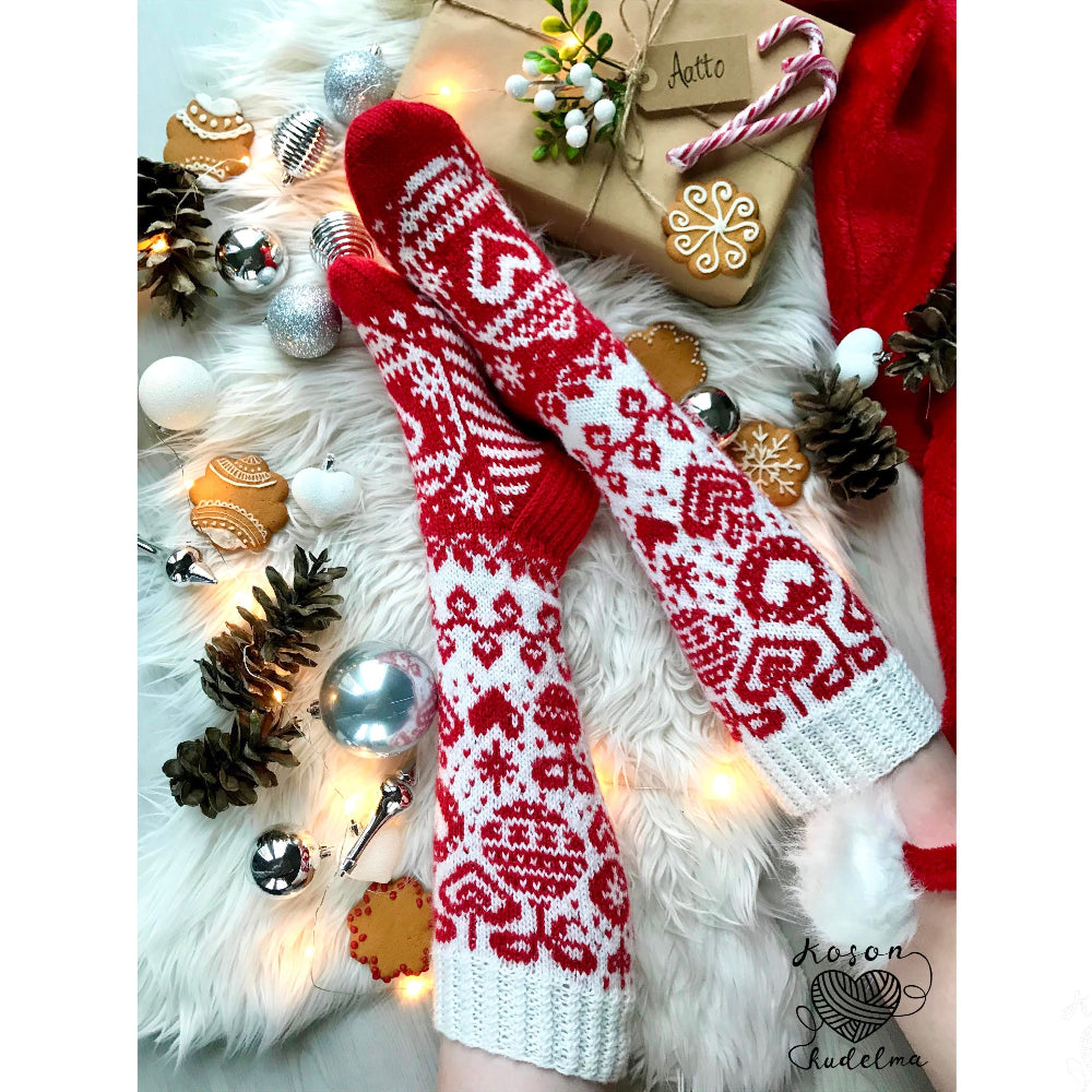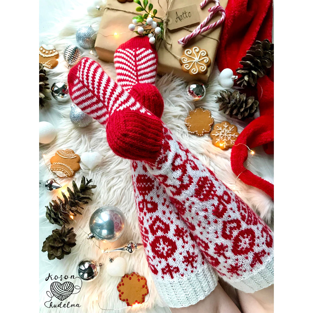 Aatto-kirjoneulesukat, neuleohje (kuvat Saara Viljanen)