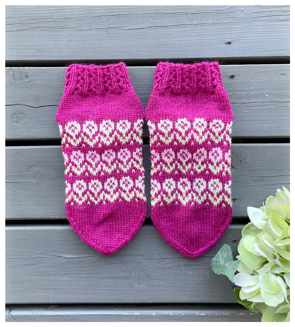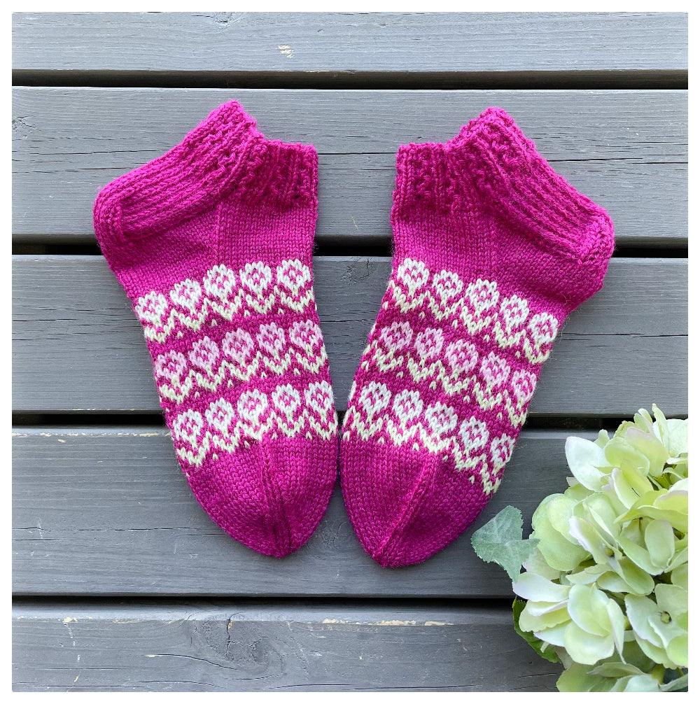Kesäisen helpot nilkkasukat! Silti ihan näyttävät kirjoneuleen ja pitsijoustimen