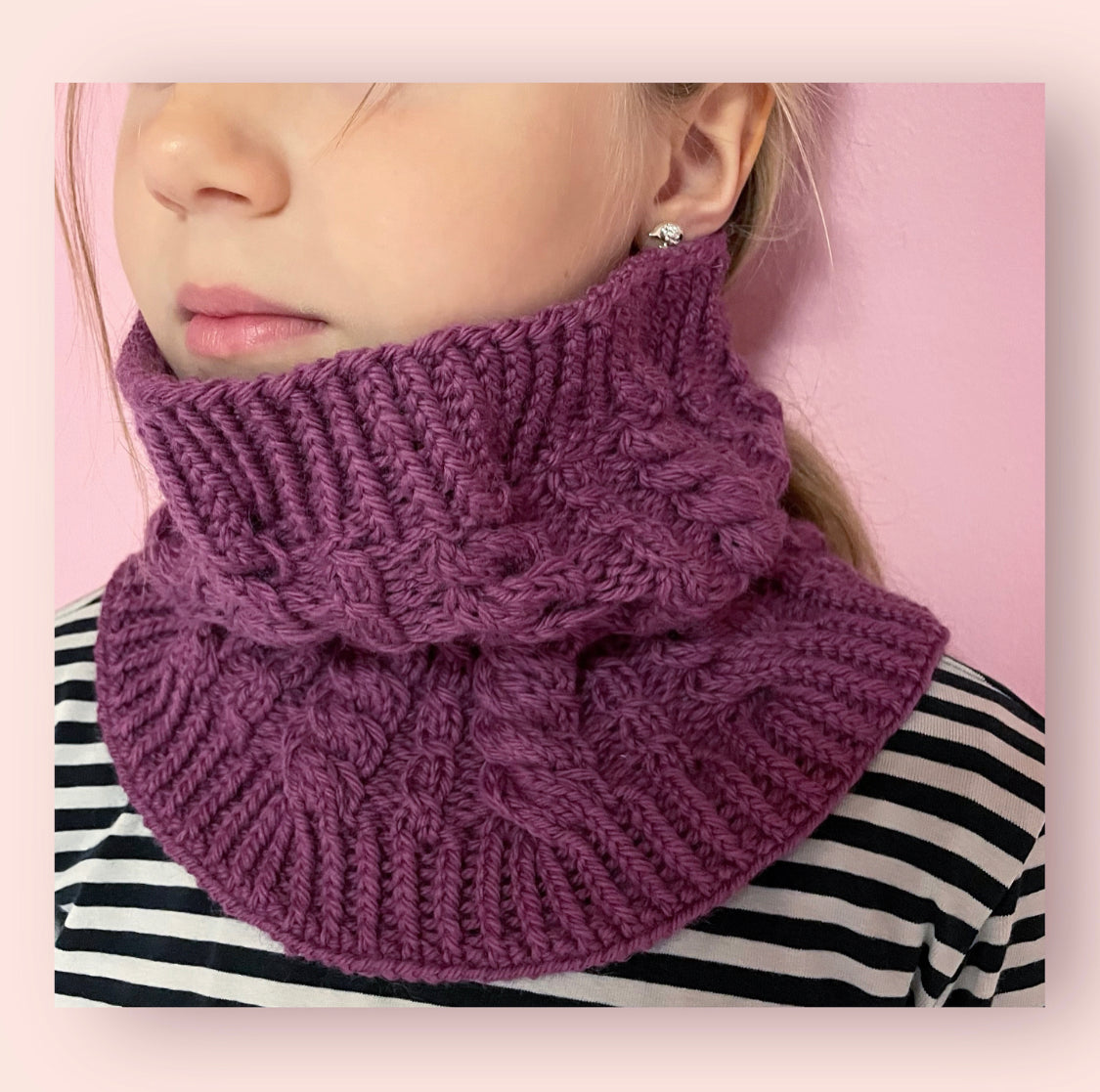 Neuleohje kauniiseen ja lämpimään lasten palmikkotuubihuiviin. Sisältää selkeät ohjeet ja kaavion.