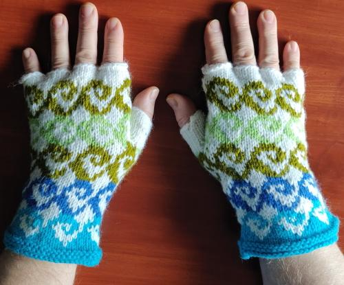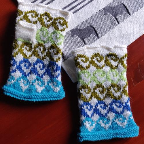 Atlantis-kirjoneulekynsikkäät, neuleohje (kuva: Katja Makkonen)
