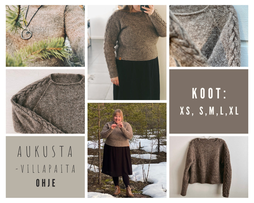 Aukusta-villapaita sopii täydellisesti käytettäväksi mekkojen ja hameiden kanssa. Se on helppo heittää päälle, kun kesäilta viilenee. Siitä syystä se on kesäiltojen luottoneule. Aukusta neulotaan alhaalta ylöspäin.