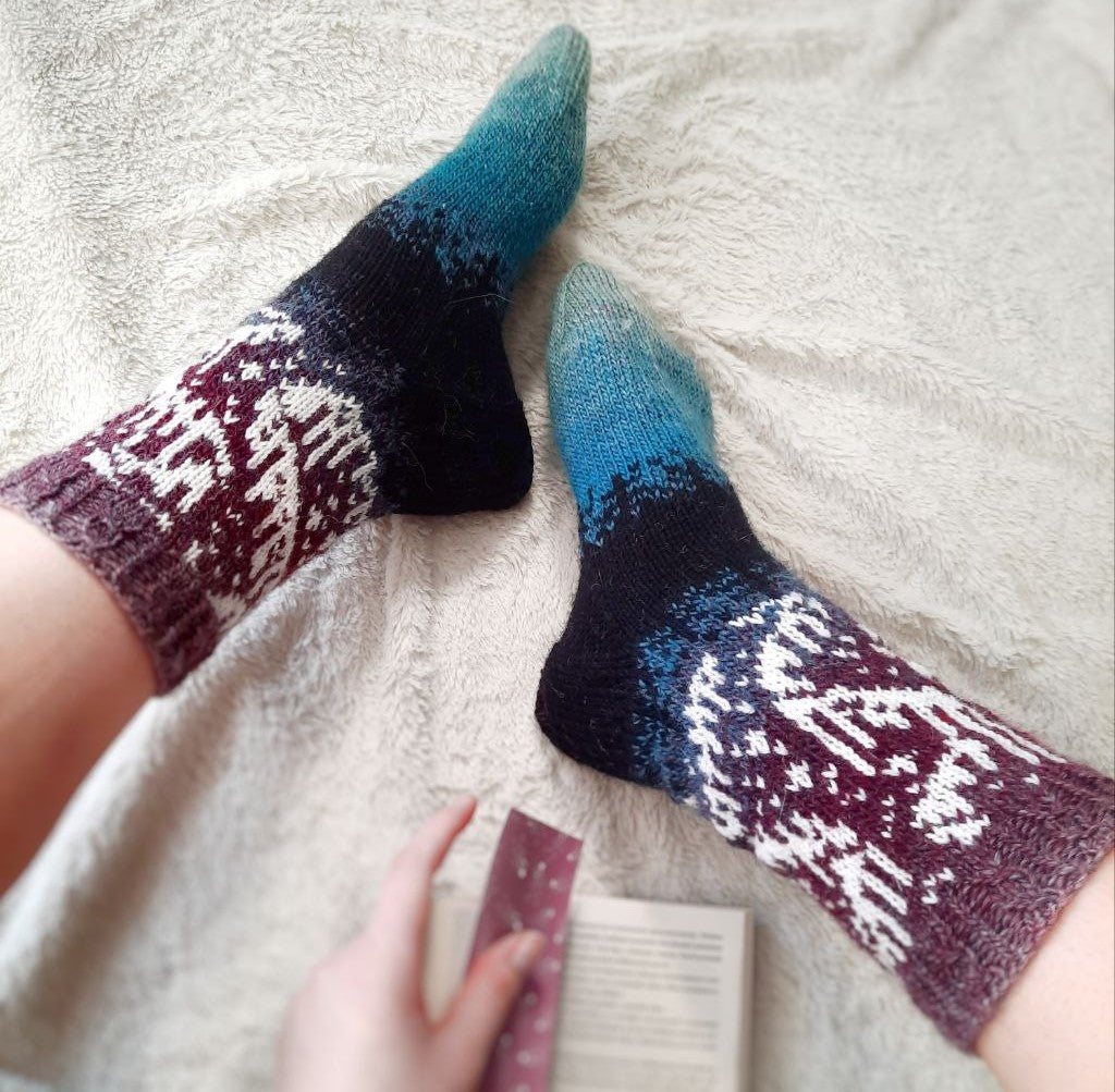 Auroorat-sukat, neuleohje (kuvat Mirka Saapunki)