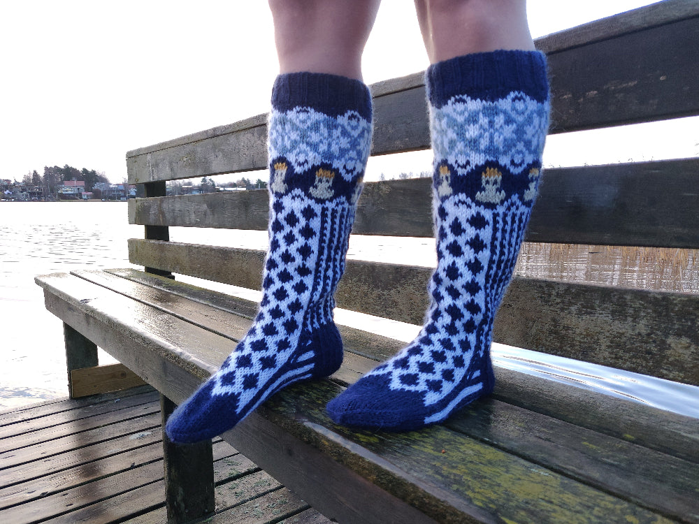 Avantouimarit-kirjoneulesukat, neuleohje (kuvat: Katja Makkonen)