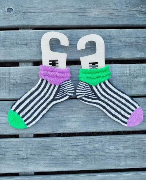 Beetlejuice-sukat, neuleohje (kuvat: Maria Sampo-Janhu)