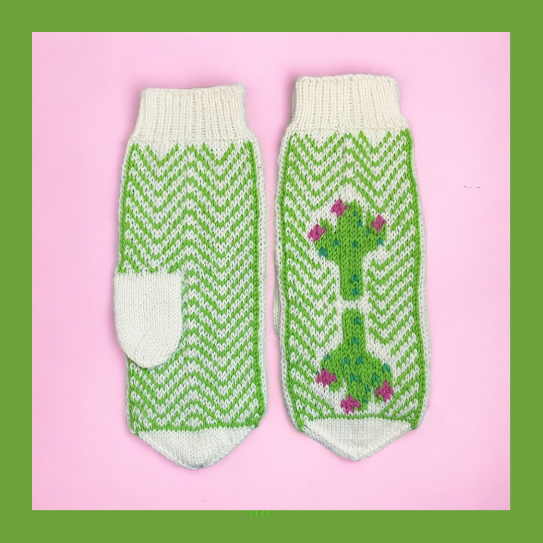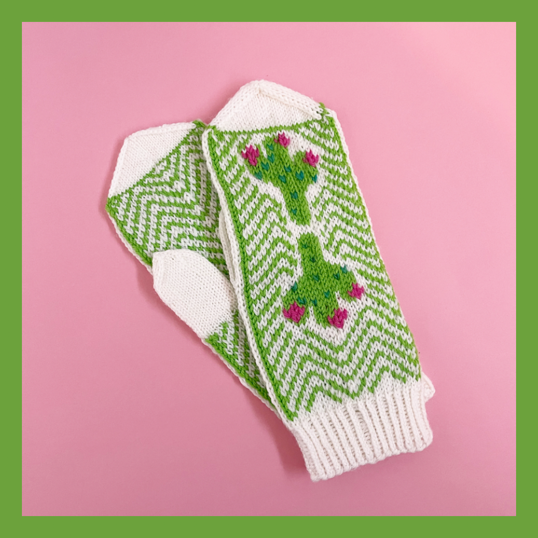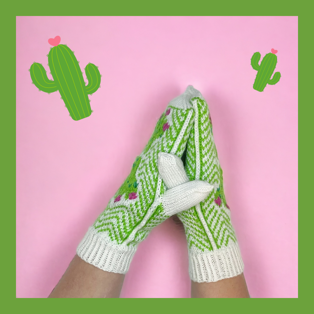 Ohje hauskoihin ja pirteisiin Kaktus-kirjoneulelapasiin.