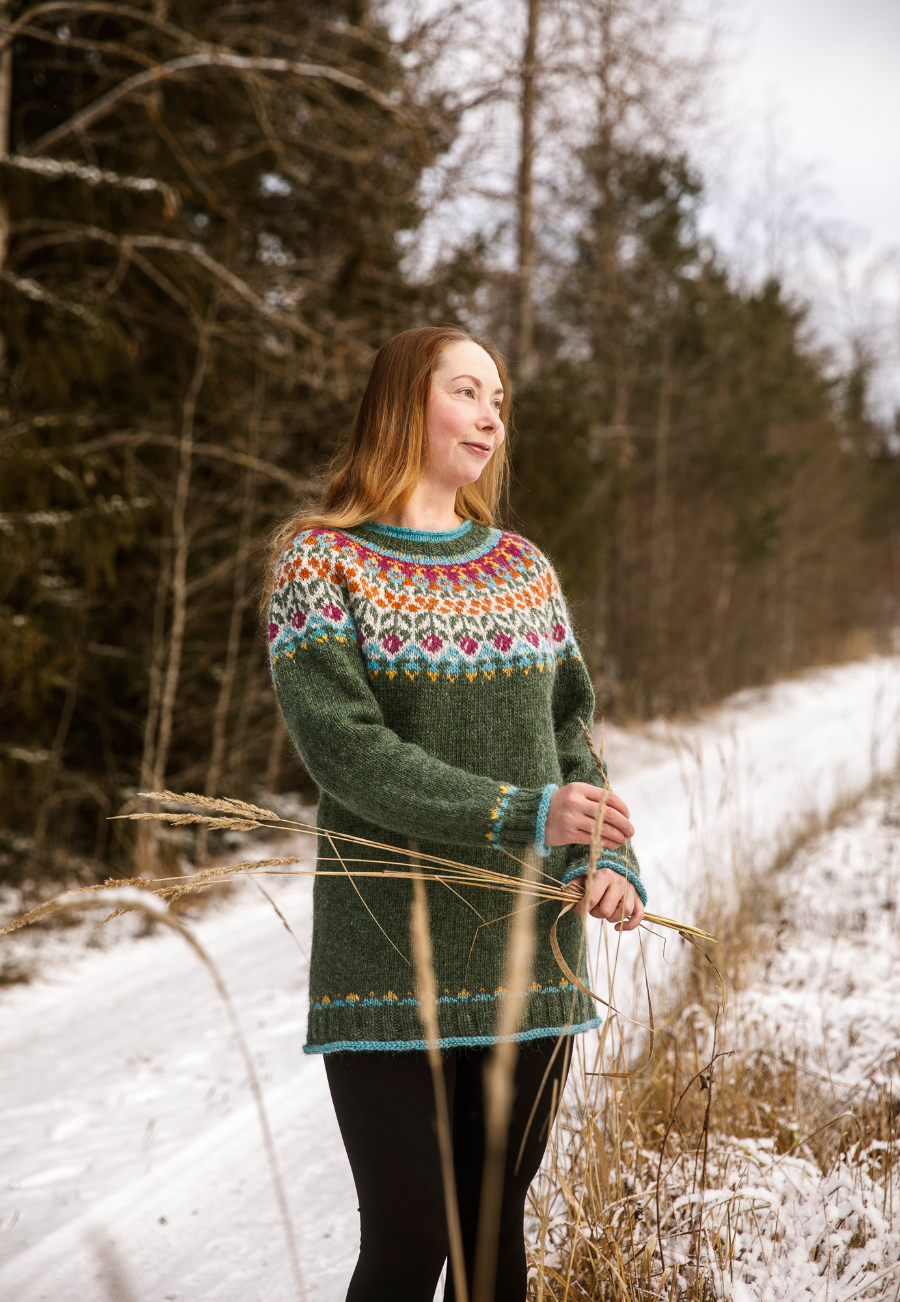 Ohje on julkaistu alunperin "Ihanaa Islannin villasta" -kirjassa tammikuussa 2022. Erilaiset kasvit ja marjat kiertävät tämän mallin kaarroketta. Botanical-neuleen kaarroke sopii hyvin toteutettavaksi myös jämälangoista, joita varmaan aivan jokaiselle on kertynyt varastoon. Kaarrokkeessa on vain kolme kerrosta kolmella langalla, vaikka se vaikuttaa paljon haastavammalta. Langanjuoksut ovat lyhyitä.