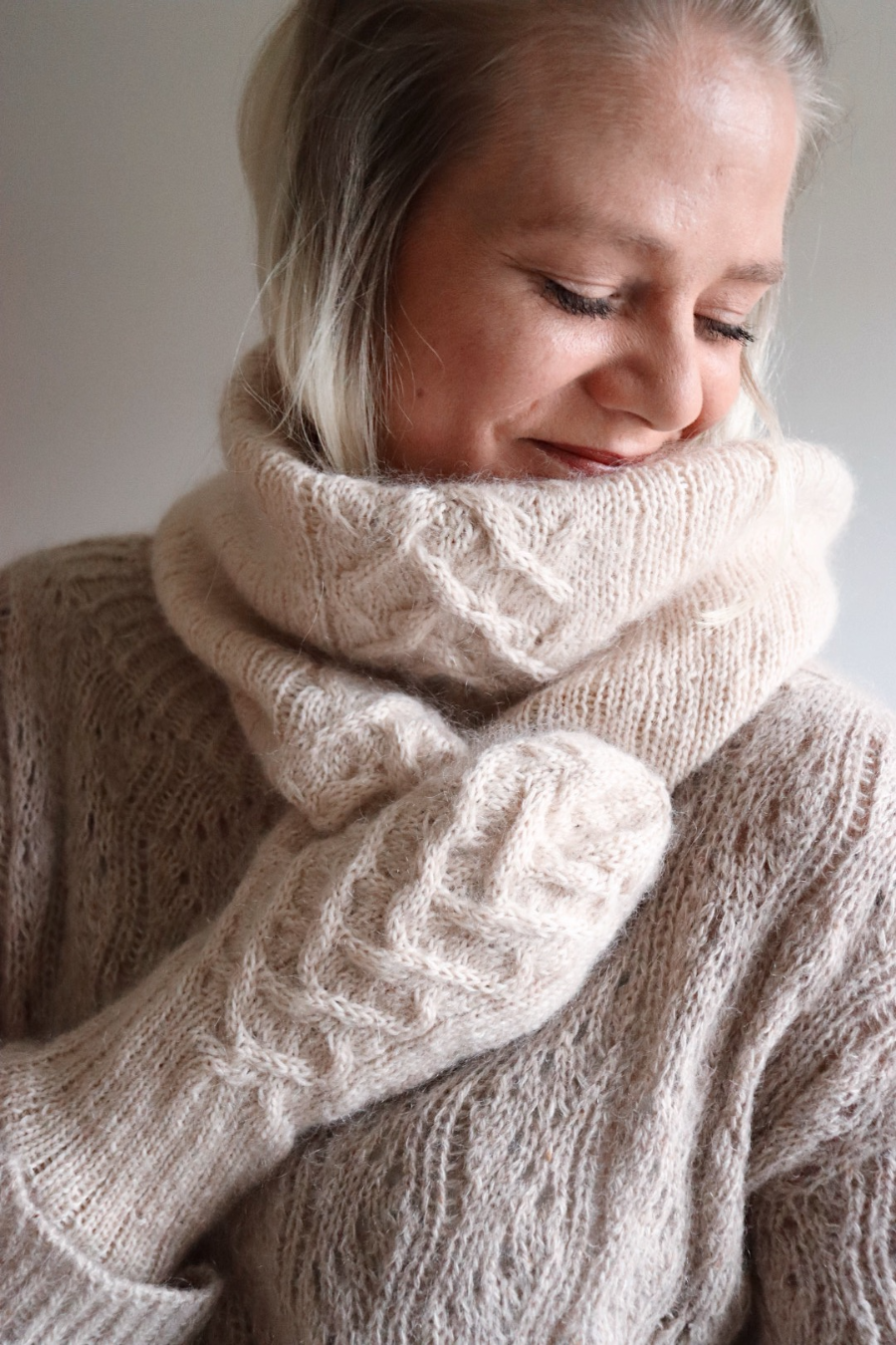 kiilapeukalo. Molemmat neulotaan ranteista sormenpäihin.