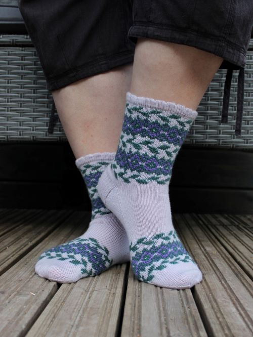 Clematis-sukat, neuleohje (kuva: Helena Joronen)