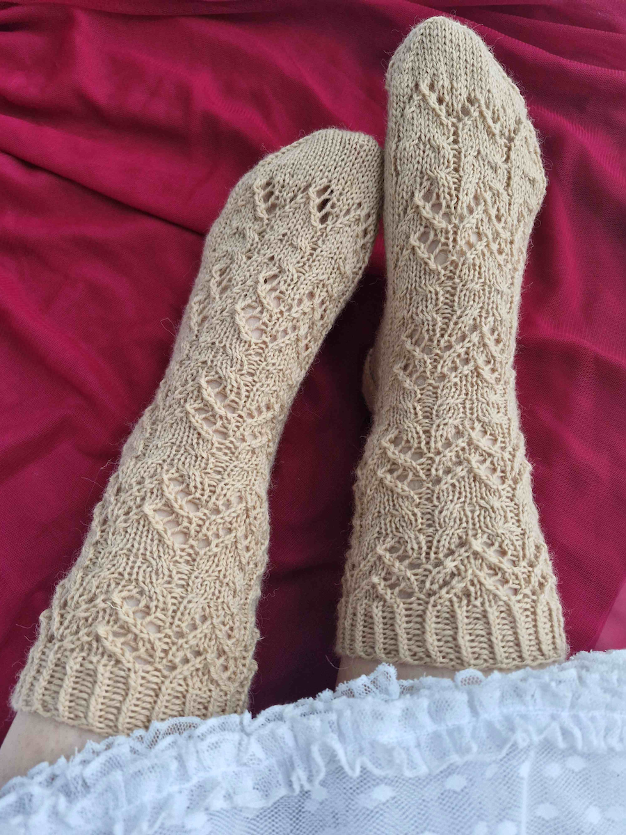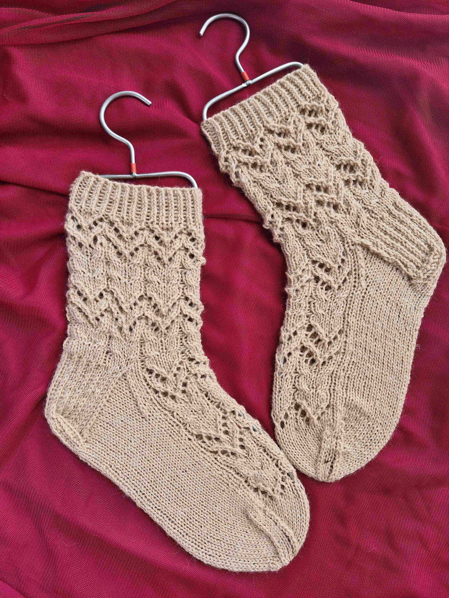 Corazon-pitsineulesukat, neuleohje (kuvat: Maarit O)