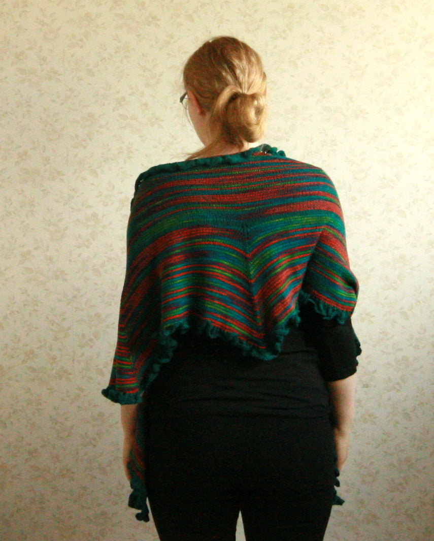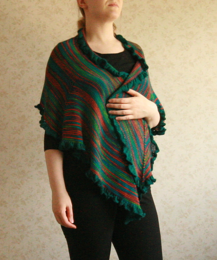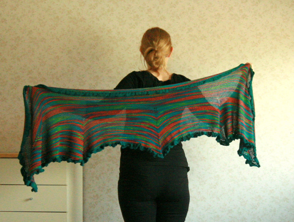 Crayon Play on viisikulmainen, kaareva huivi, joka aloitetaan keskeltä ja neulotaan kohti reunoja. Aluksi luodaan muutama sata silmukkaa, sen jälkeen neulotaan pyörönä lisäten silmukoita joka toisella kerroksella ja vaihdetaan väriä kerroksen välein. Huivi on suunniteltu kirjaville langoille, joiden väri-ilottelua pehmentää toinen, yksivärinen lanka.