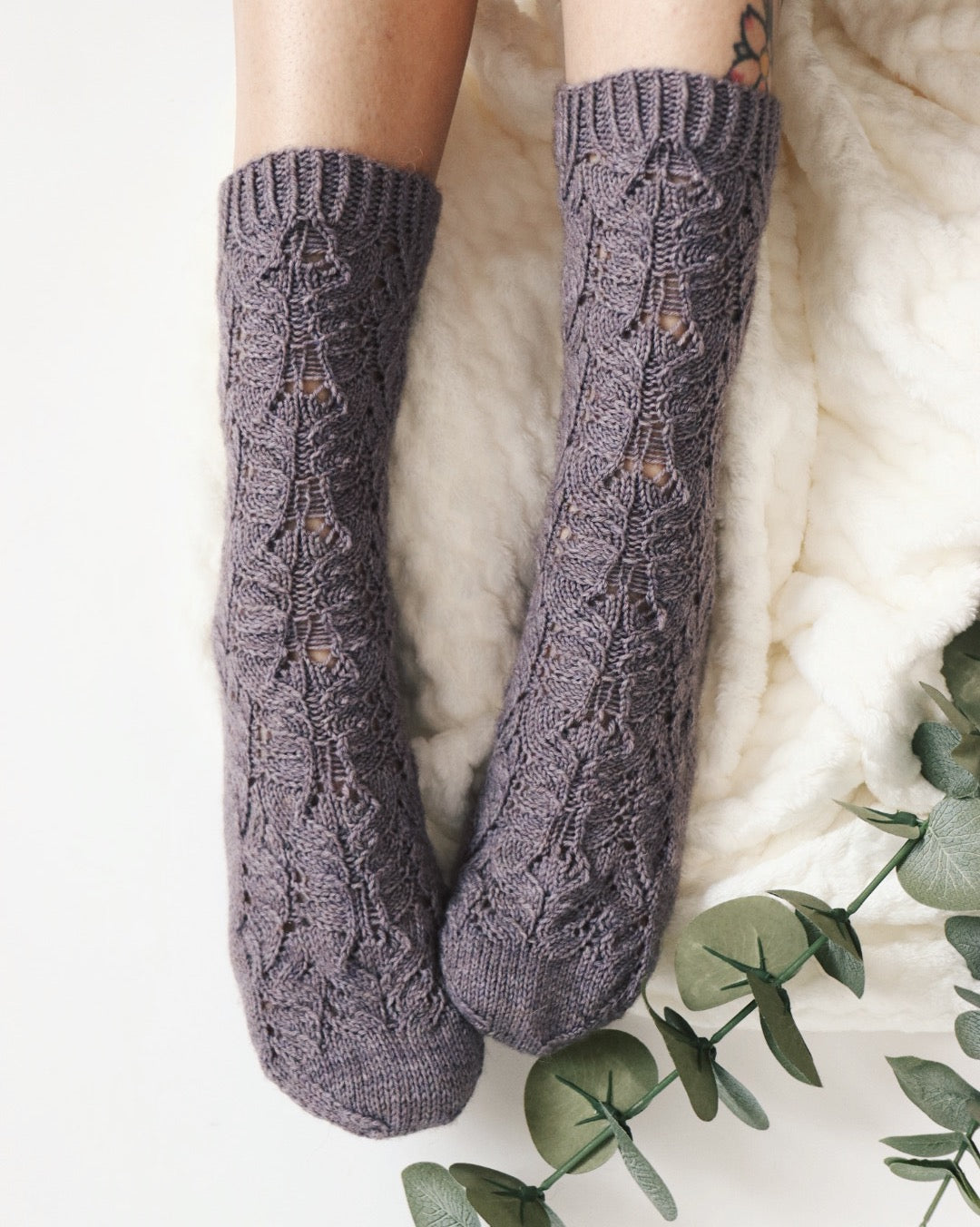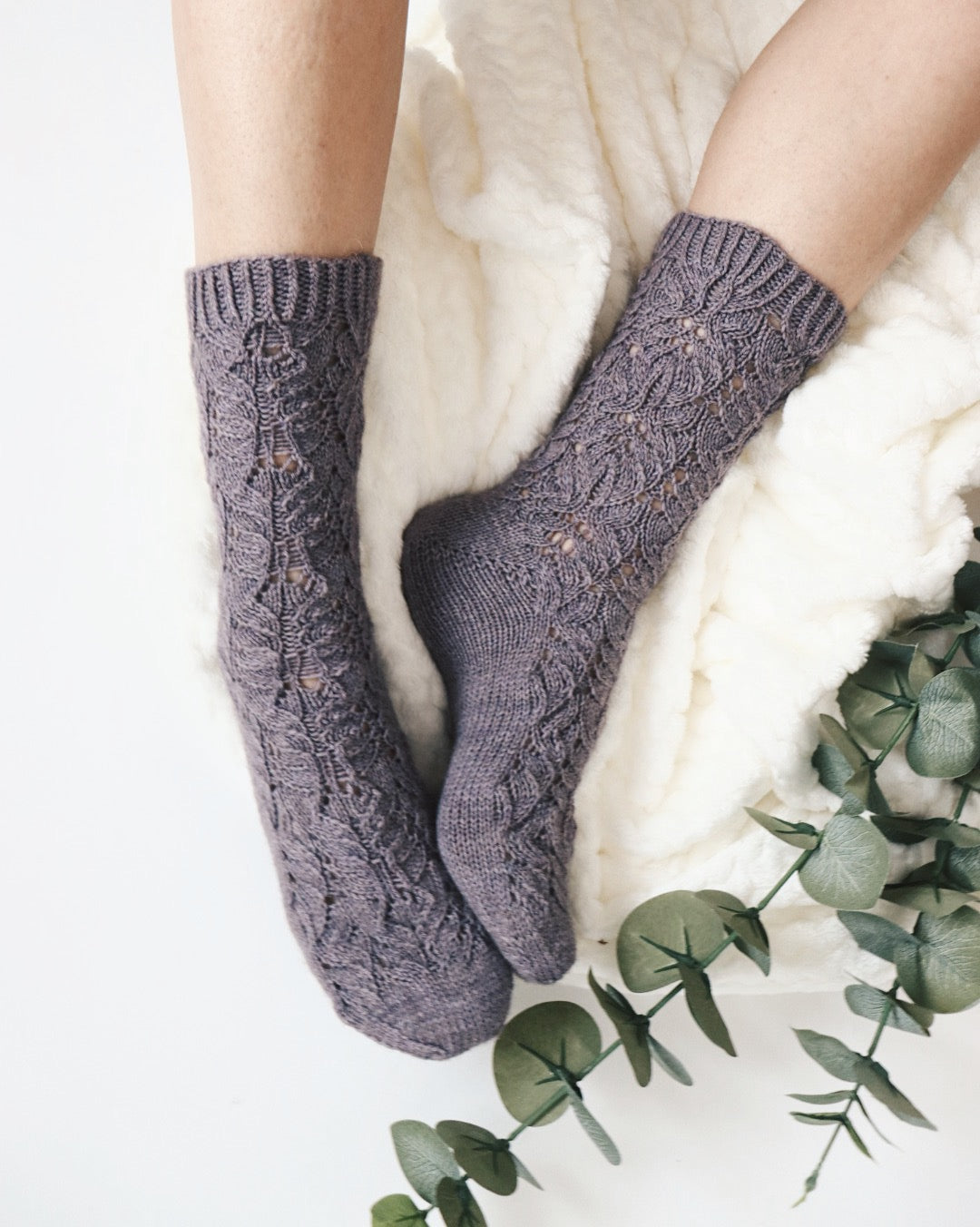 Pitsiunelmaa! Diana-sukat neulot vaikka juhlaan. Diana-sukkien pitsikuvio toistuu sukan varressa sekä