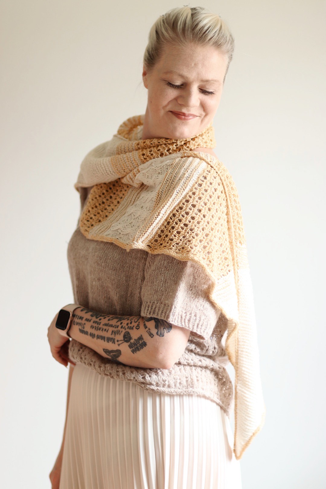 Dimensione-huivi on mysteerihuivi, joka valmistui yhteisneulonnassa Snurre lankakaupan kanssa!
