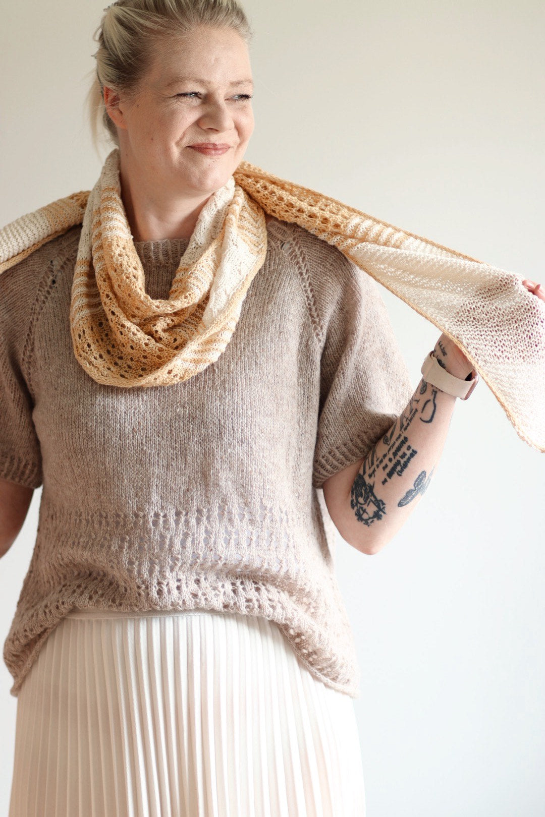 Voit käyttää myös sport- tai DK-vahvuista lankaa, tällöin huivista tulee vain