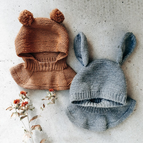 Sandnes Sunday (50 g=235 m) kaksinkertaisena, 100 (100) 100 (100) 100 (150) 150 g. (Keskikokoiset tupsut on laskettu mukaan menekkiin.) Vaihtoehtoisia lankoja: Novita Merino 4ply (50 g=230 m) kaksinkertaisena, Drops Merino Extra Fine (50 g=115 m) yksinkertaisena. Muutkin DK-vahvuiset langat käyvät (esim. Sandnes Double Sunday tai Merinoull), kuten myös fingering-vahvuiset langat tuplana (esim. Filcolana Arwetta).