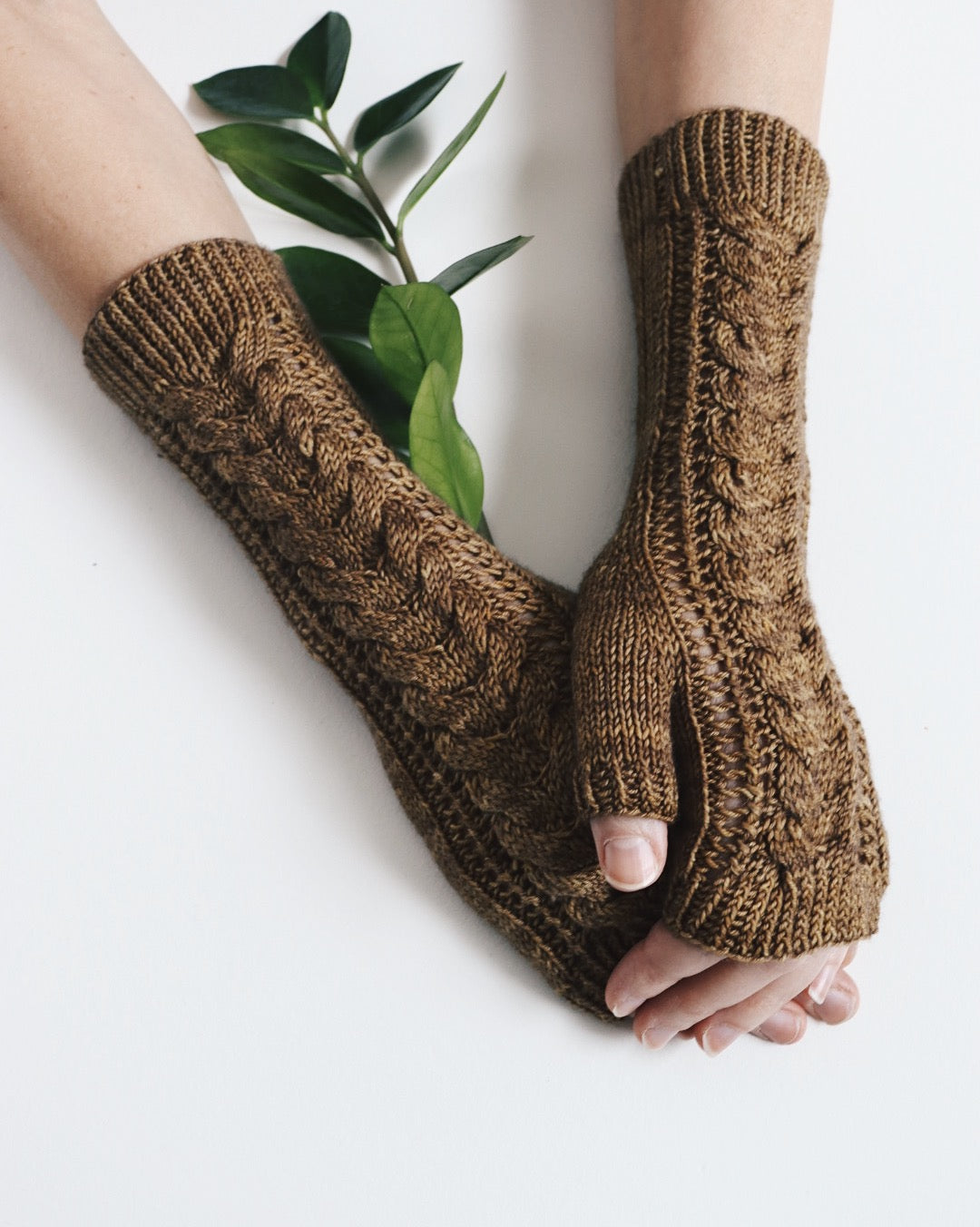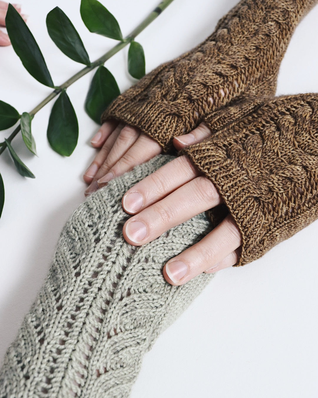 Emilia-kämmekkäät neulotaan ranteista sormiin päin. Kämmekkäissä on helppo kiilapeukalo ja varren pituuden voit itse päättää vain neulomalla kuviota enemmän tai vähemmän.