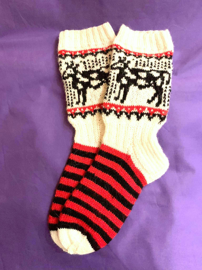 Farmisonni-kirjoneulesukat, neuleohje (kuva Asta Heljomaa)