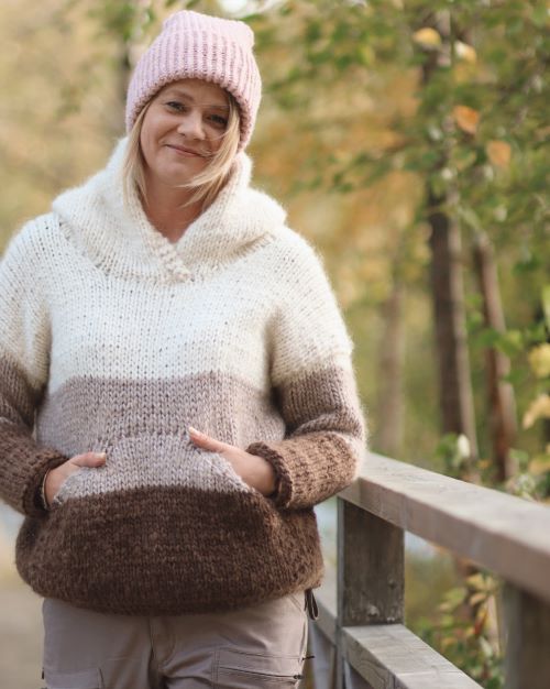 Frozen-huppari neulotaan ylhäältä alas paksuilla muhkulangoilla. Tämä ulkoiluun sopiva unisex-huppari on loisto lisä syksyn viileisiin iltoihin. Unisex hupparissa on useampi lankavaihtoehto ja koot XS-6XL!