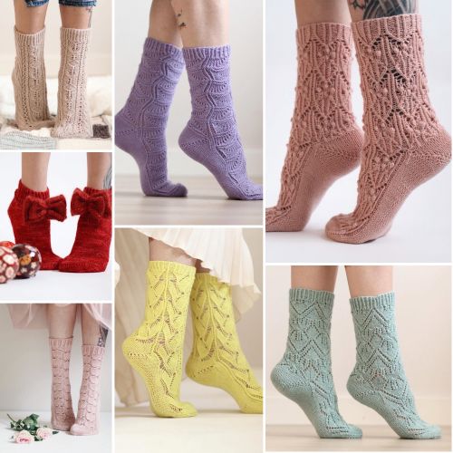 Sisältää ohjeet sukkiin: Ruusunen, Belle, Wowbow, Viola, Sunshine, Usma ja Amore.