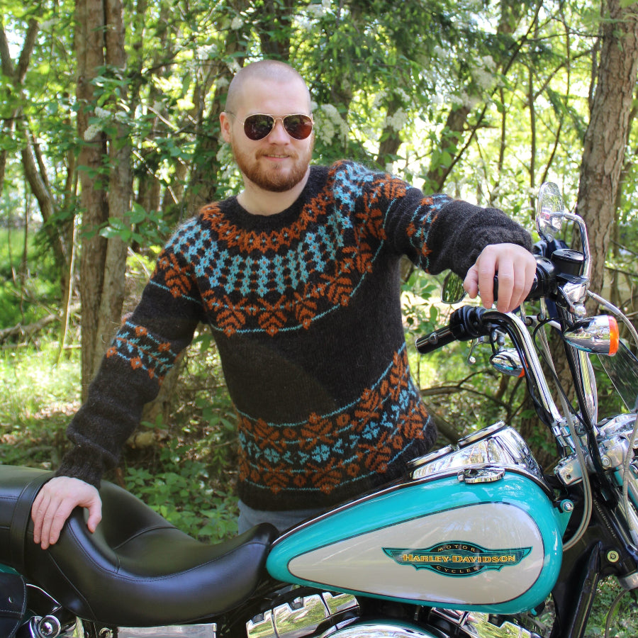 Harley kaarrokeneule sai nimensä ja värinsä kuvissa näkyvästä Harley Davidson moottoripyörästä. Malli käy yhtä hyvin niin naiselle kuin miehelle eikä tarvitse omistaa harrikkaa tai mitään muutakaan moottorikulkuneuvoa sitä käyttääkseen. Ideat vain aina syntyvät jostain.