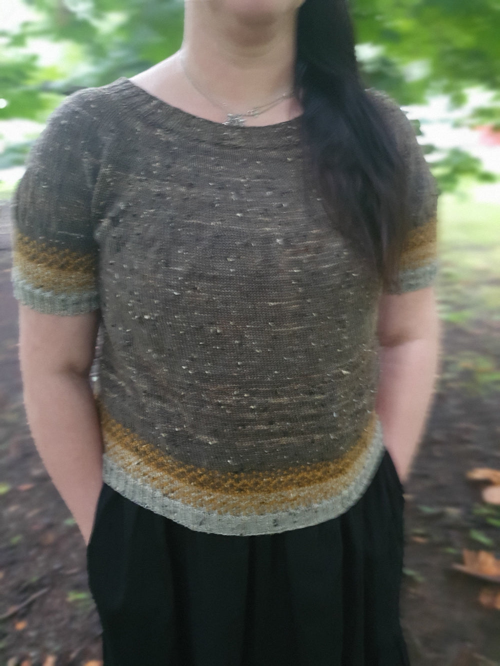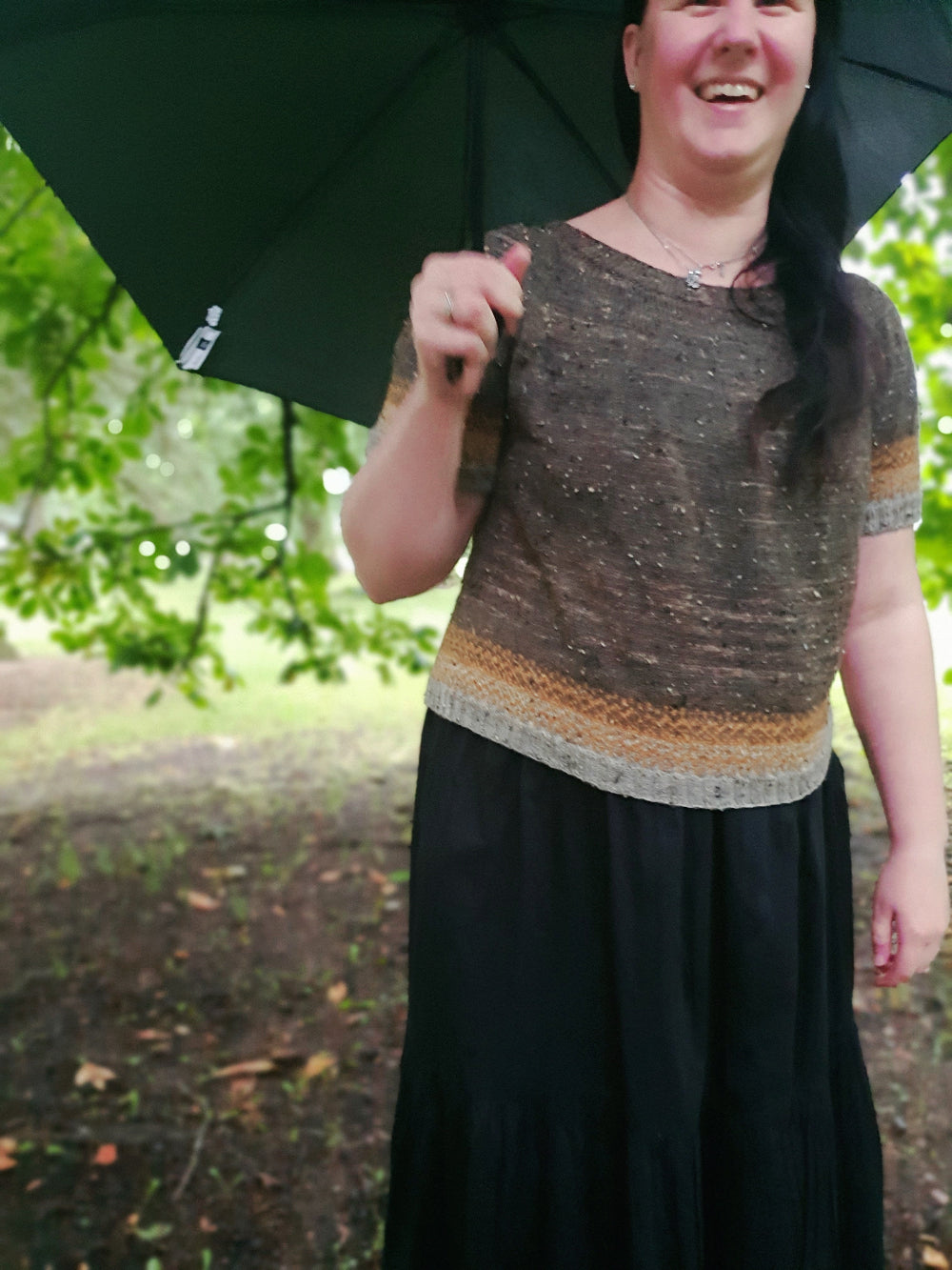 Harvesting tweed on lyhyt neulepusero, joka on neulottu alhaalta ylöspäin. Kirjoneulekuvio on helmassa ja puseron lyhyissä hihoissa, muuten pusero on neulottu yhdellä värillä. Helma ja hihat liittyvät kaarrokkeeseen, joka on neulottu lyhennetyillä kerroksilla antamaan muotoa pääntielle. Valmiissa puserossa on väljyyttä 10cm verran, valittavissa on koot XS - 5XL:n.