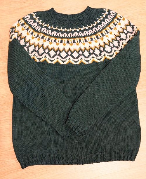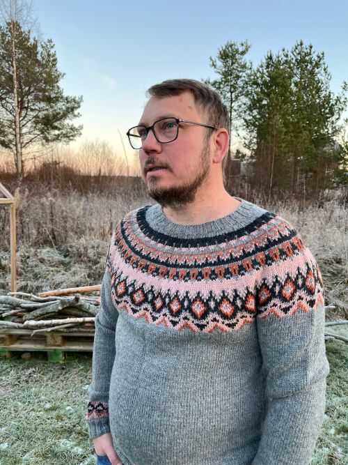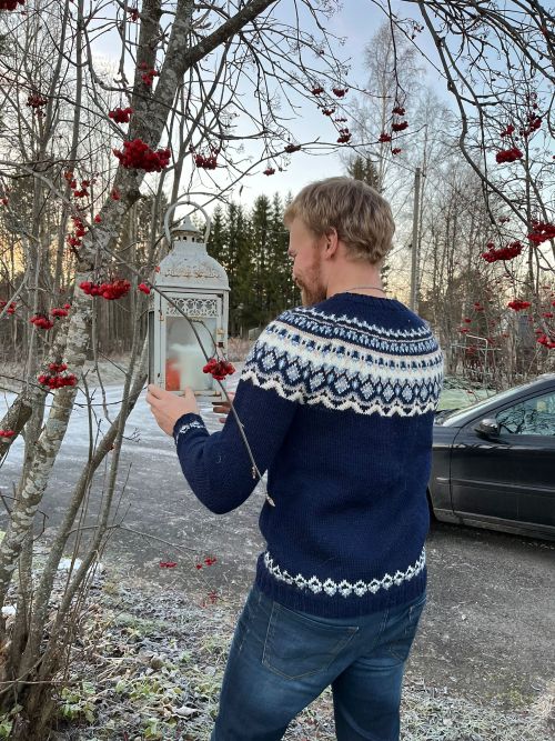 Vaikeusaste: Normaali (hieman silmukointia, kohtuullisen pituisia ja lyhyitä langanjuoksuja, max. 4 väriä samalla kierroksella)