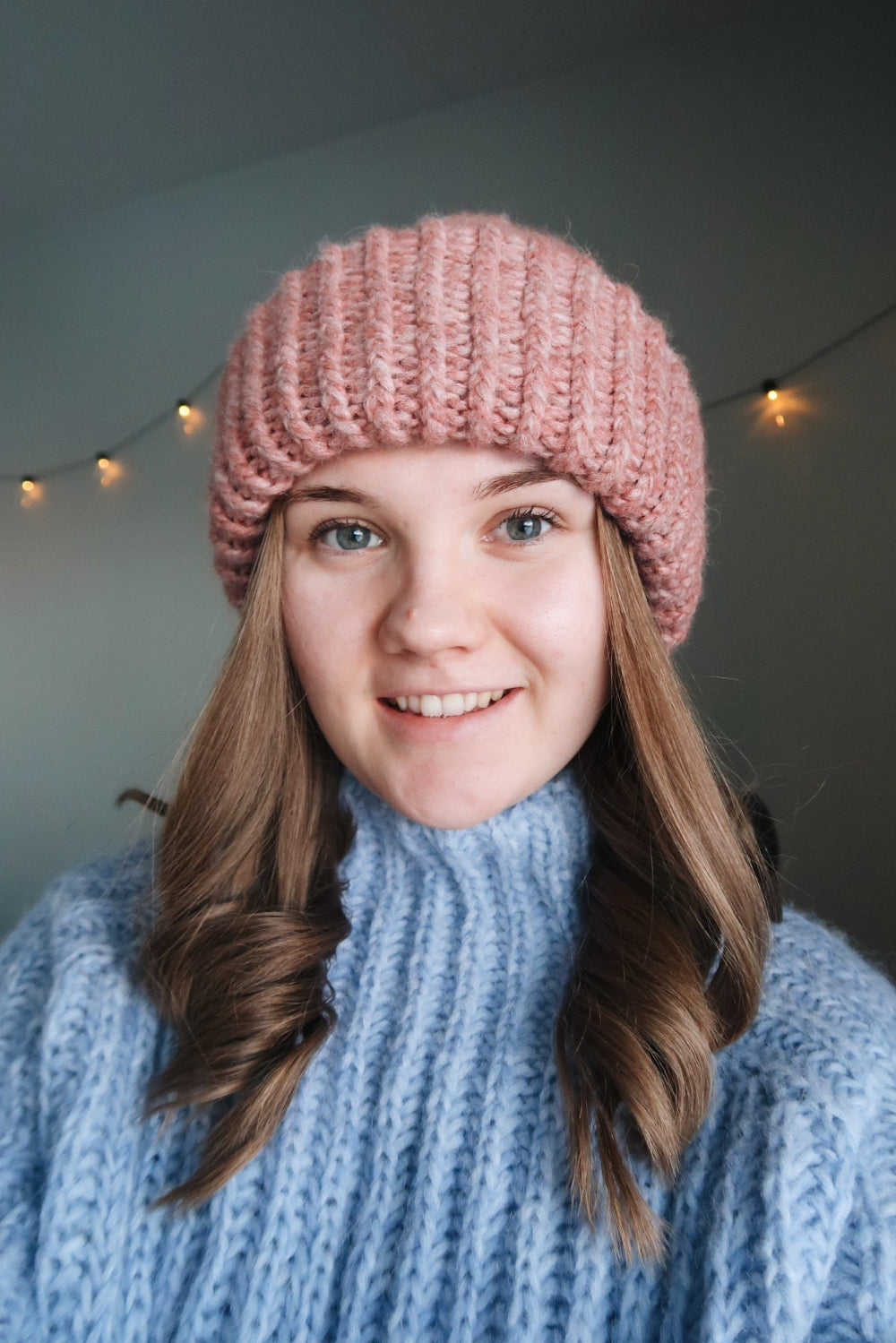 Vaikeusaste: Helppo. Pipo on todella helppo neuloa, sillä alaosa neulotaan kierrettynä joustinneuleena ja yläosa sileänä neuleena.