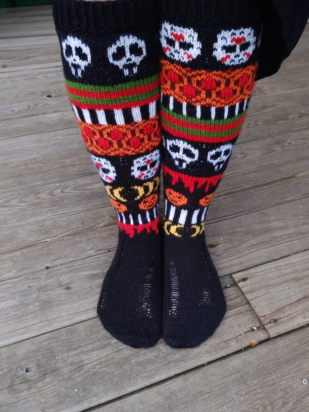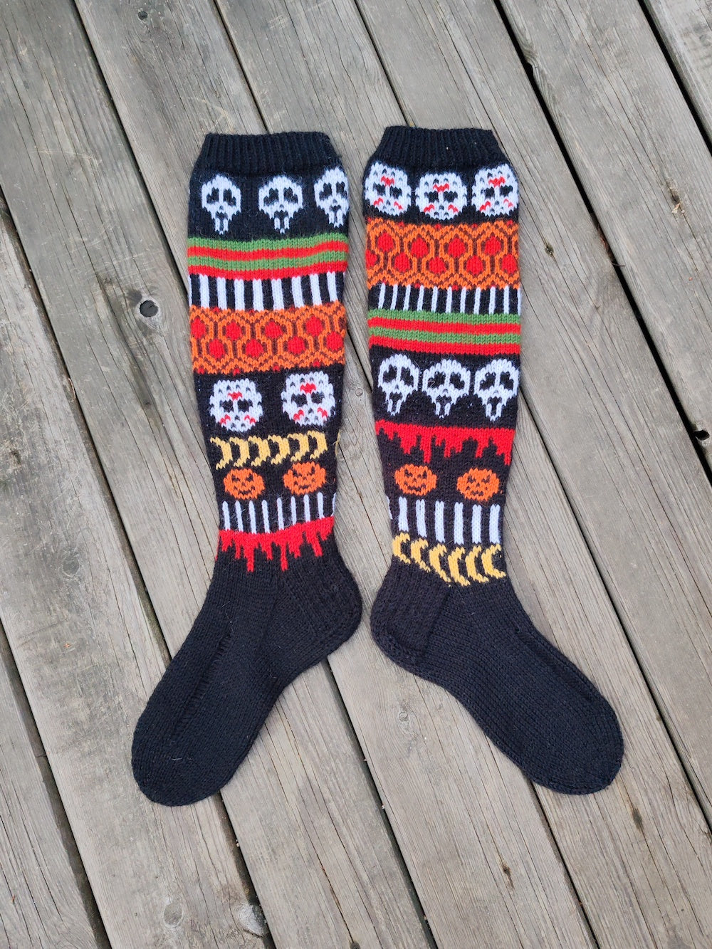 Horrorween-kirjoneulesukat, neuleohje (kuvat: Maria Sampo-Janhu)