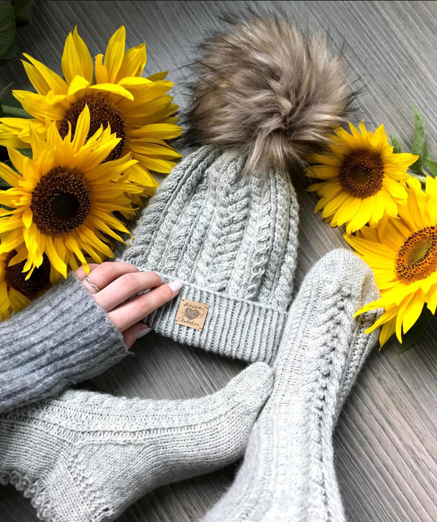 Tarvikkeet: 3,5 mm ja 4 mm pyöröpuikot + apupuikko ja tupsu.