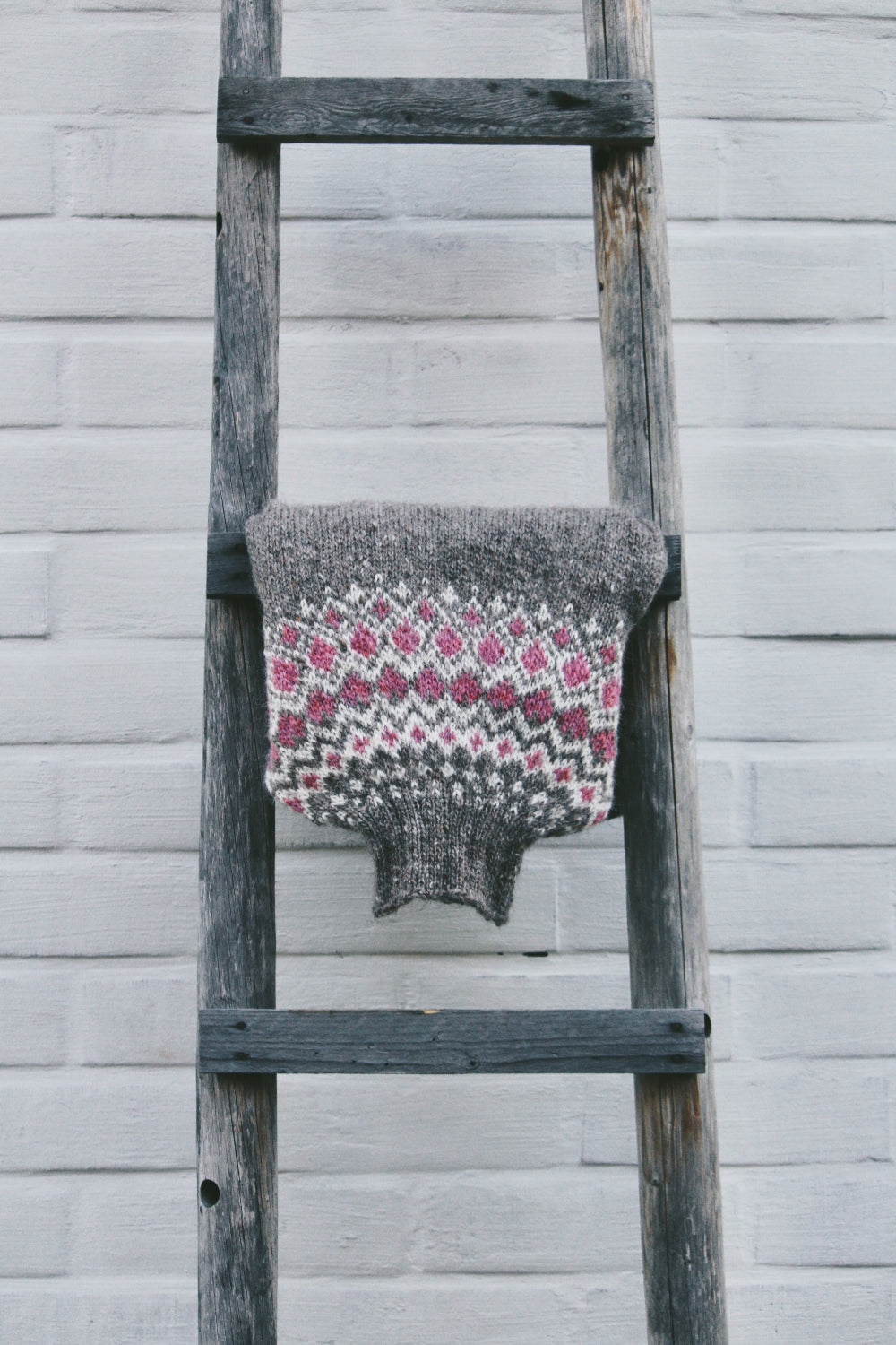 Ingrida-villapaita neulotaan alhaalta ylöspäin pyörönä. Tämä malli on kuin timantti, sydämellinen timantti. Löydätkö kaarrokeeseen piilotetut sydämet?