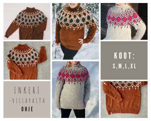 Inkeri-villapaita, neuleohje (kuvat Inka R)
