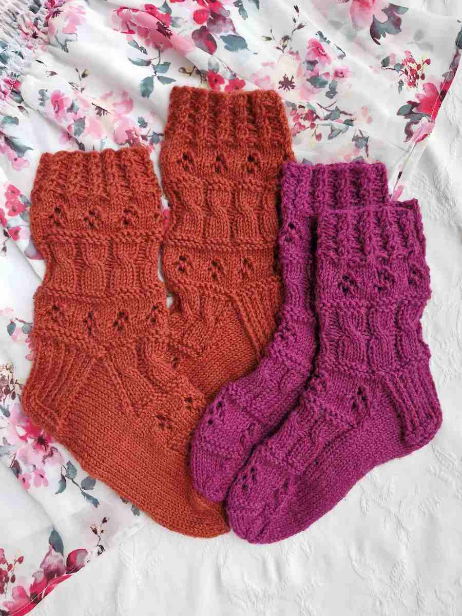 Intiaanikesä-sukat, neuleohje (kuvat: Maarit O)