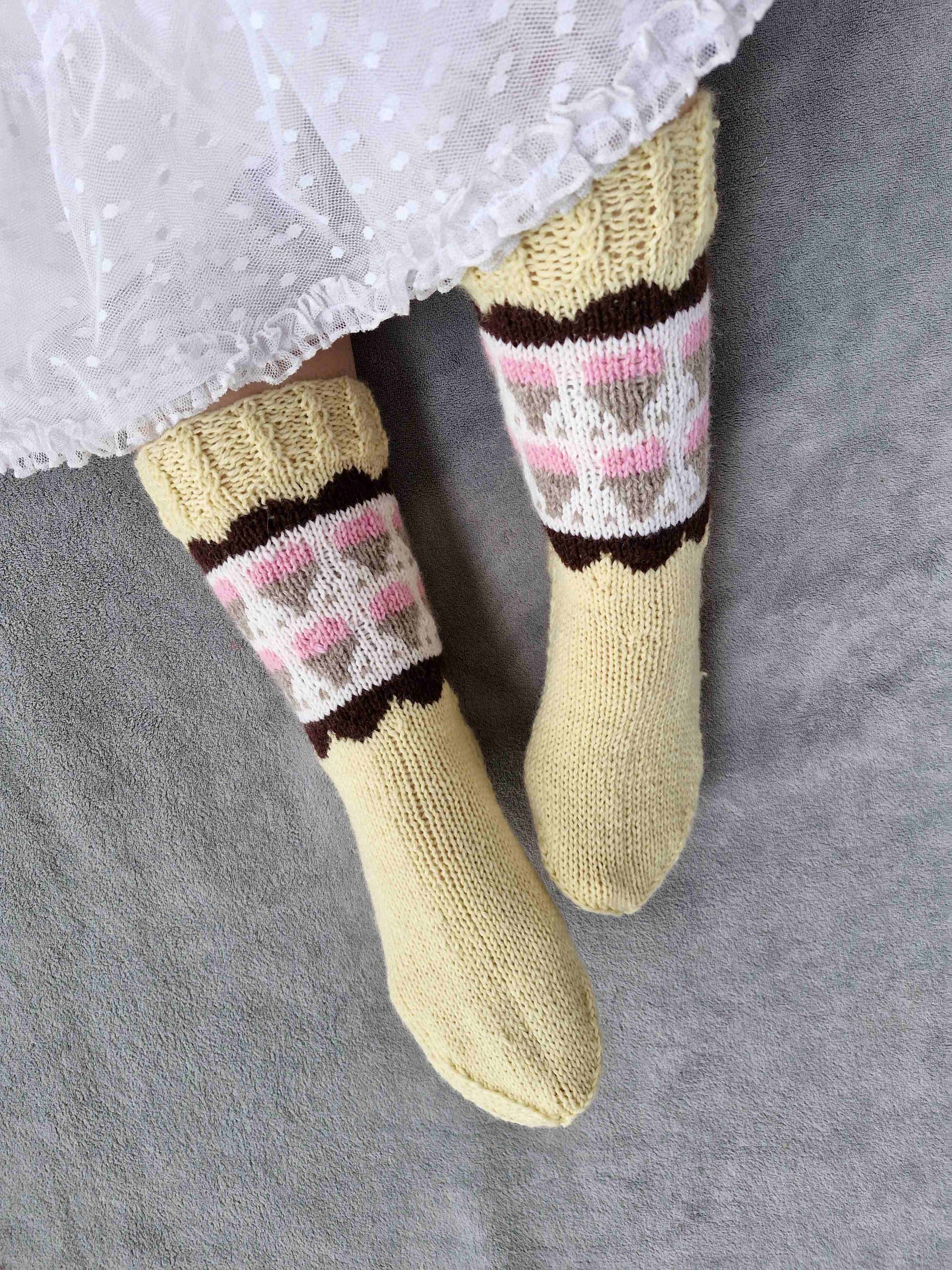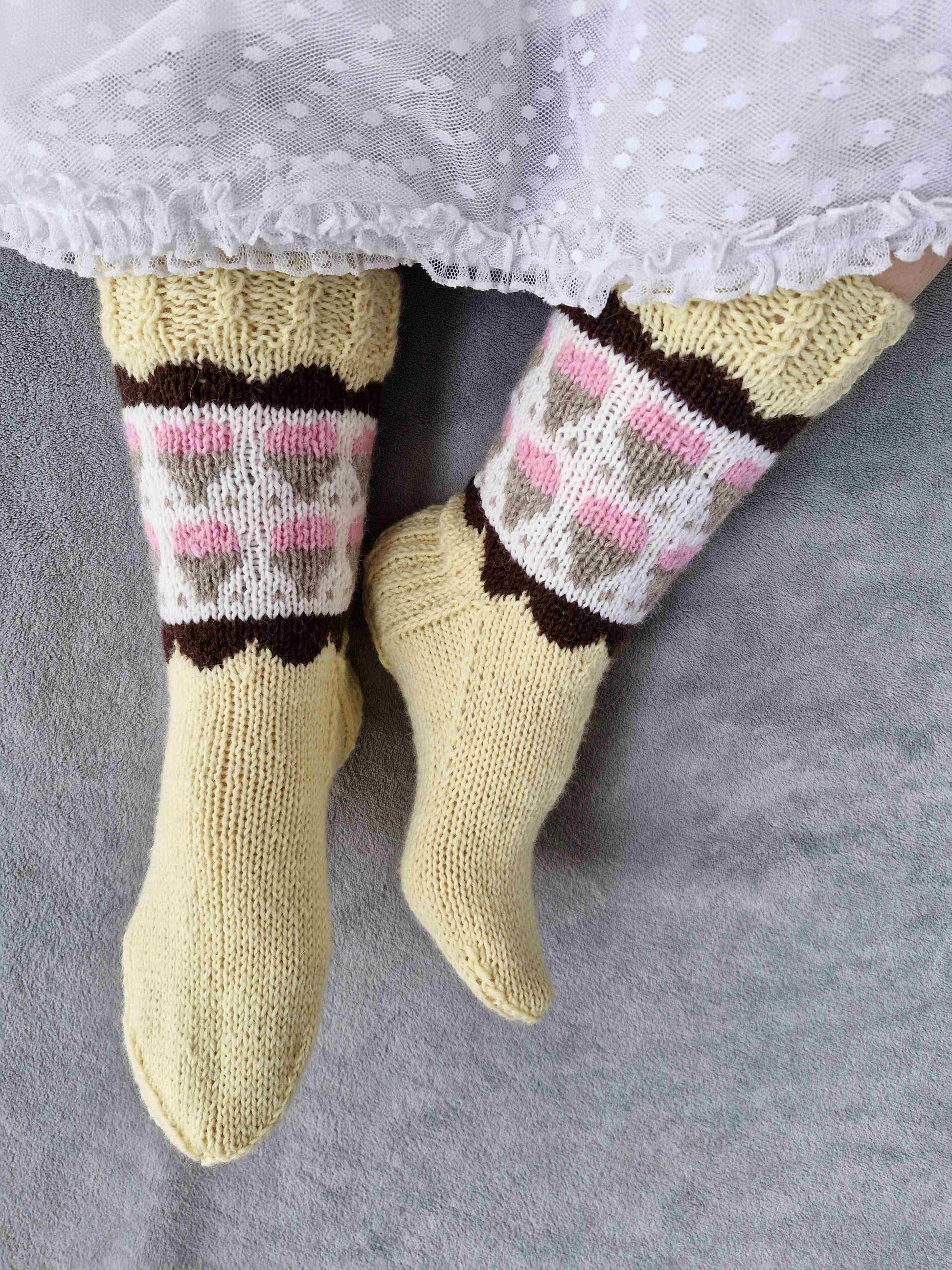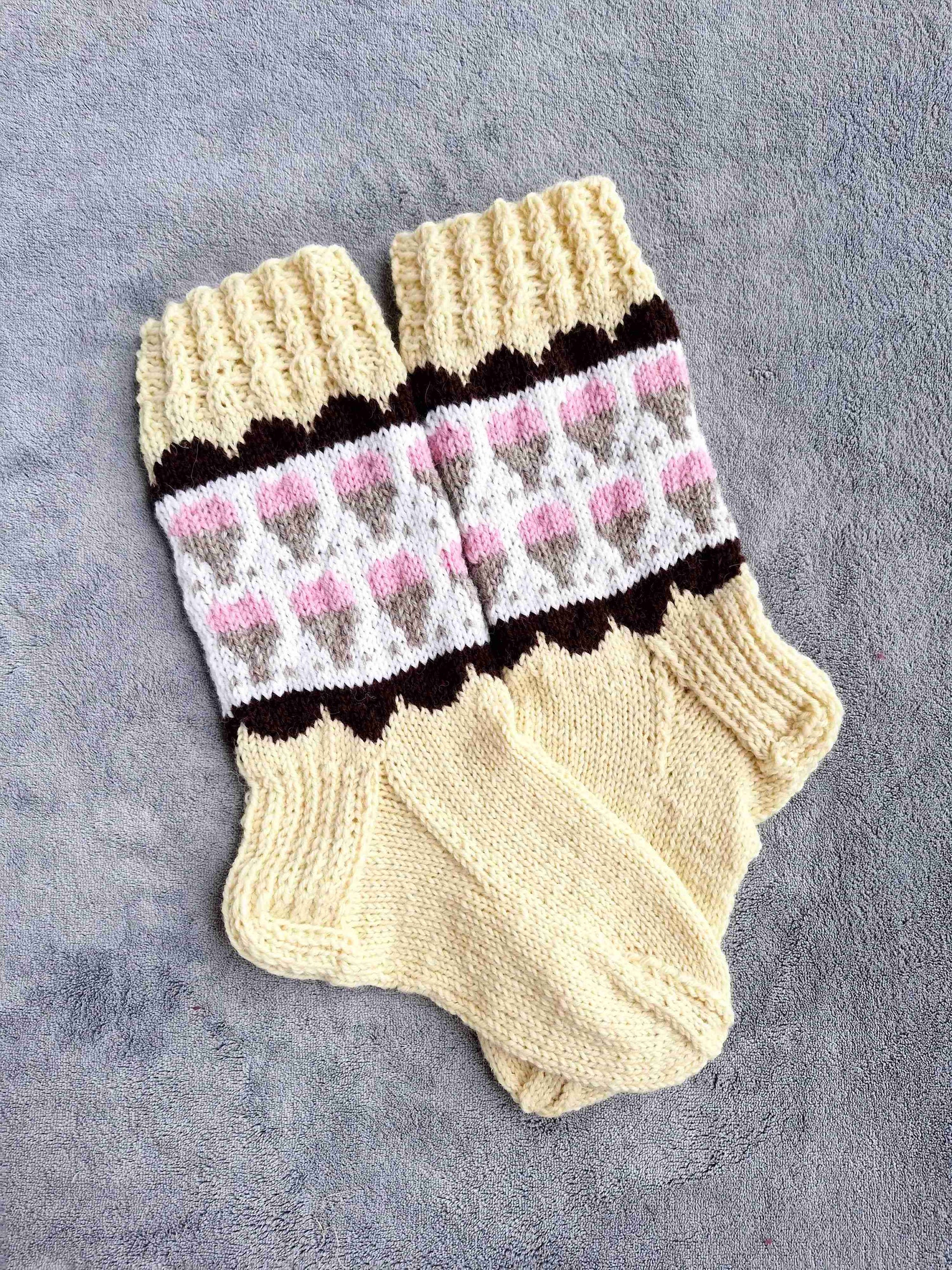 Jäätelökesä-kirjoneulesukat, neuleohje