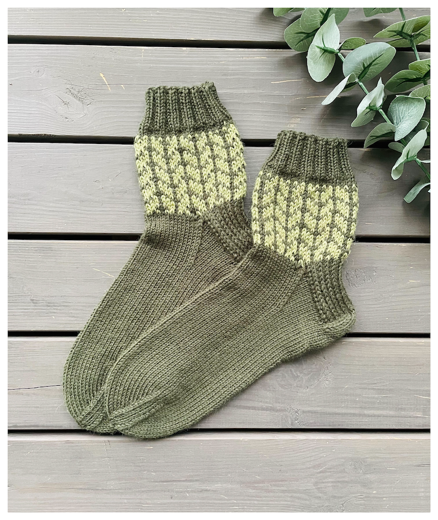 Jäljet-sukat, neuleohje (kuvat Irene Pöytäsaari)