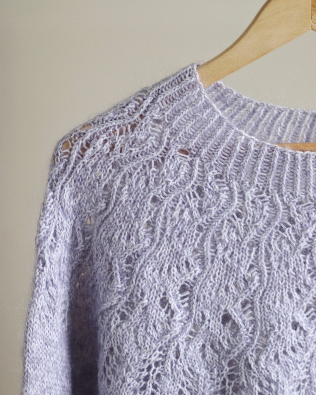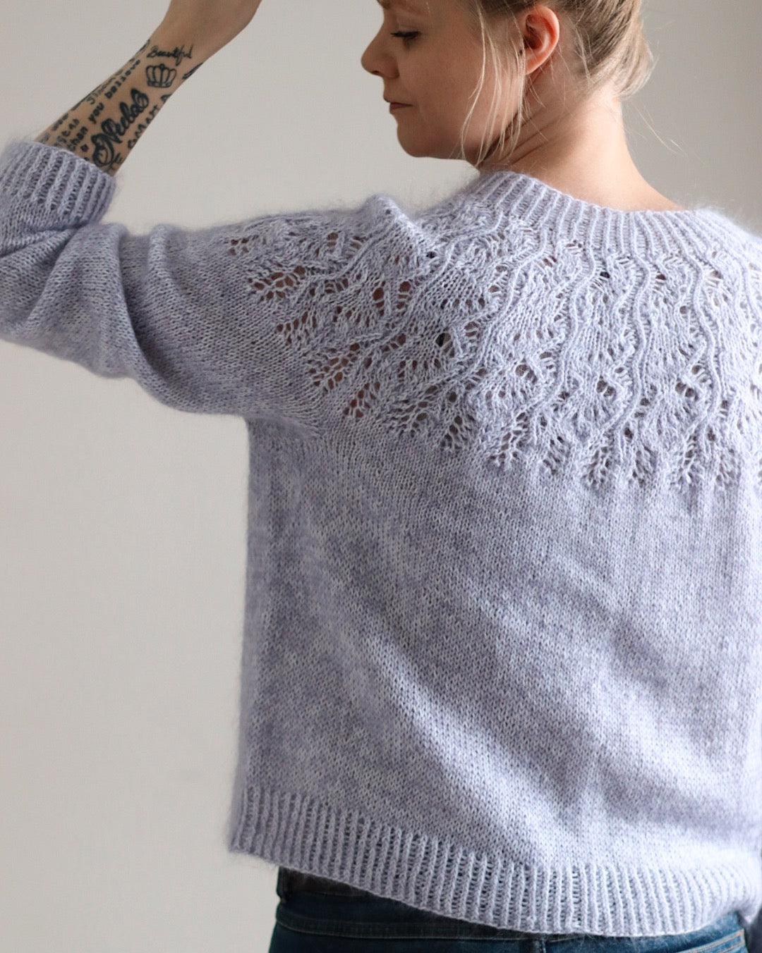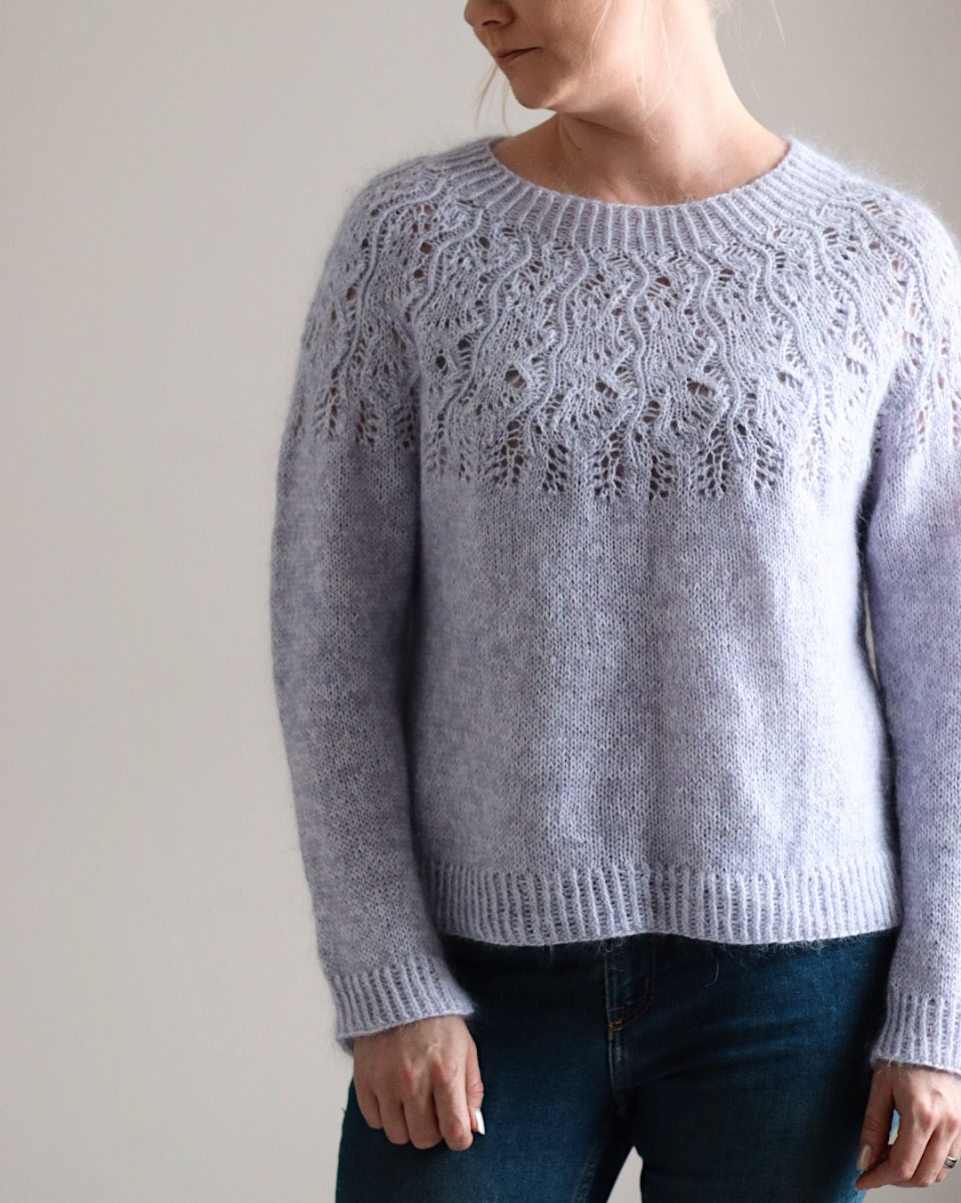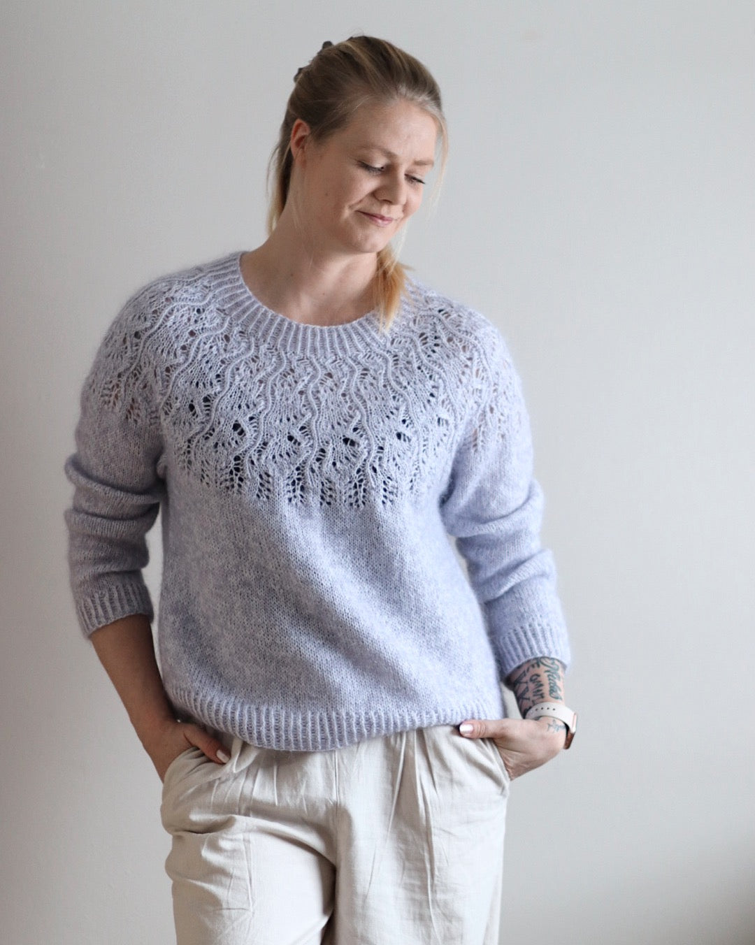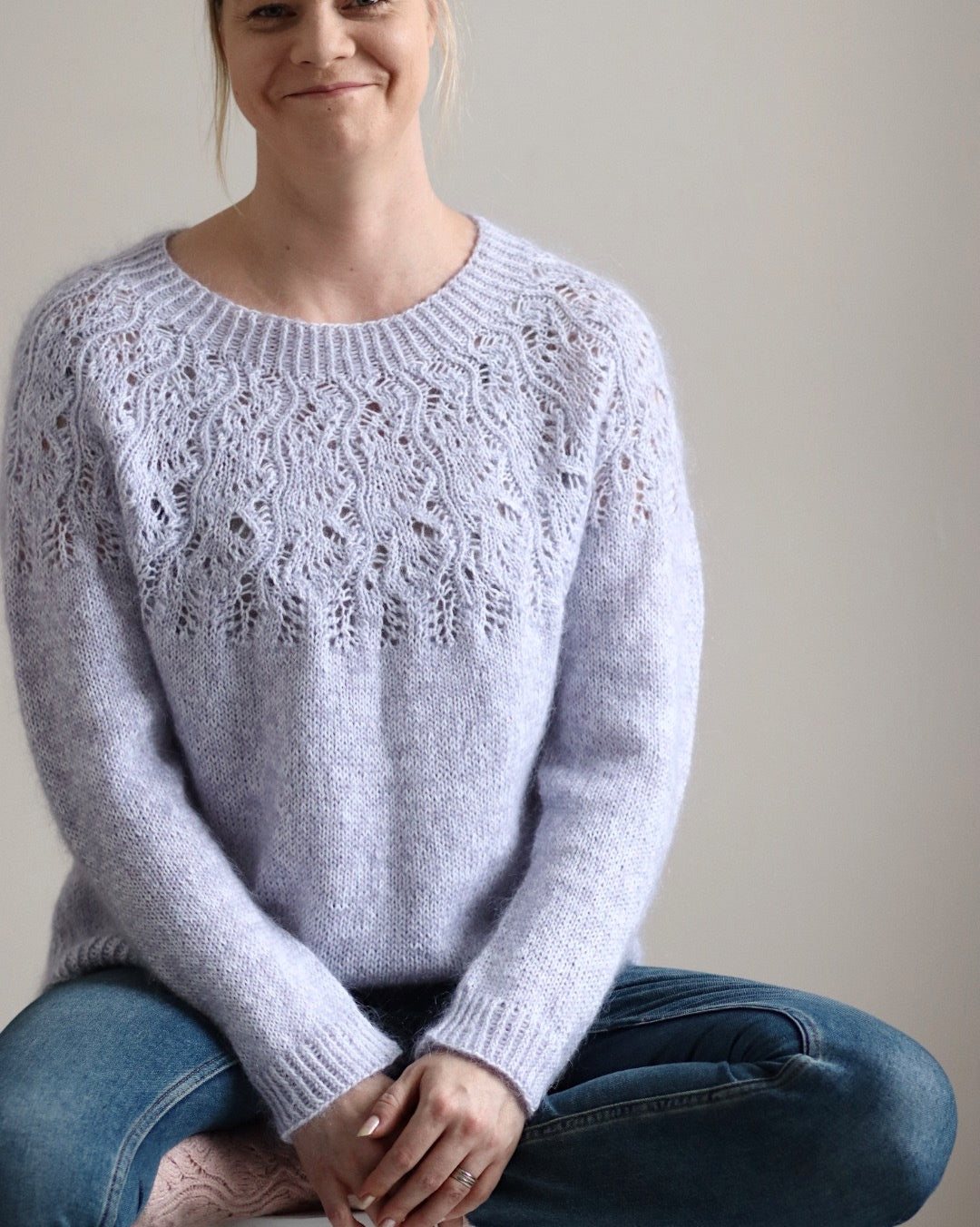 Jasmin-villapaita on pitsikaarroke unelma! Jasmin neulotaan kauluksesta alaspäin ilman yhdisteltäviä saumoja.
