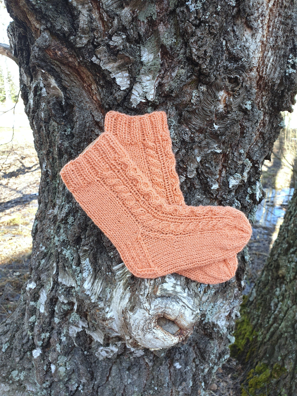 Tarvikkeet Josefiina sukat (kuvassa vaalean oranssit):