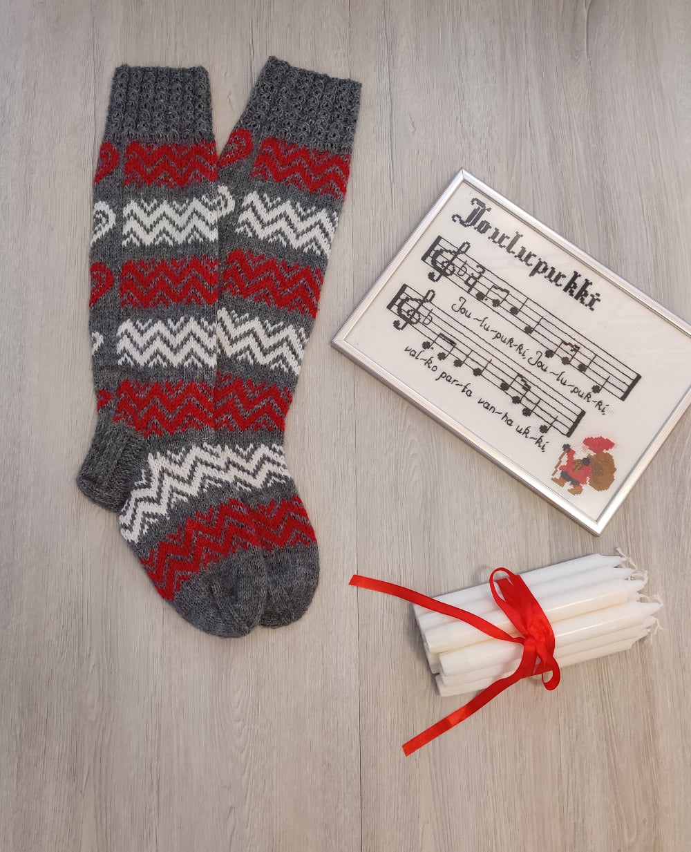 Joulu asuu sydämessä-villasukat, neuleohje (kuvat Marja-Liisa Kiiski)