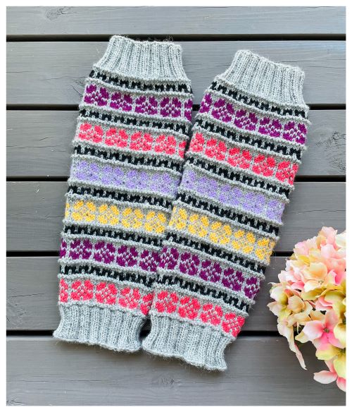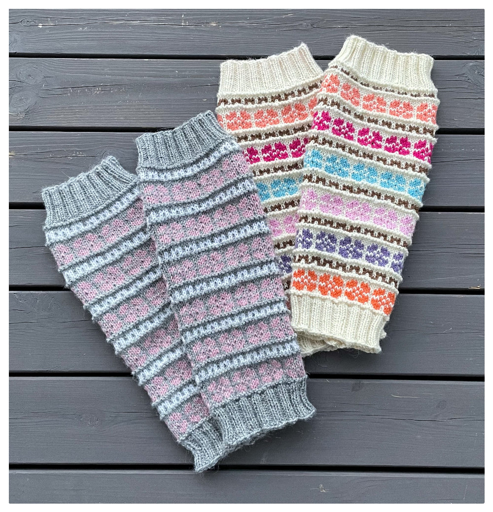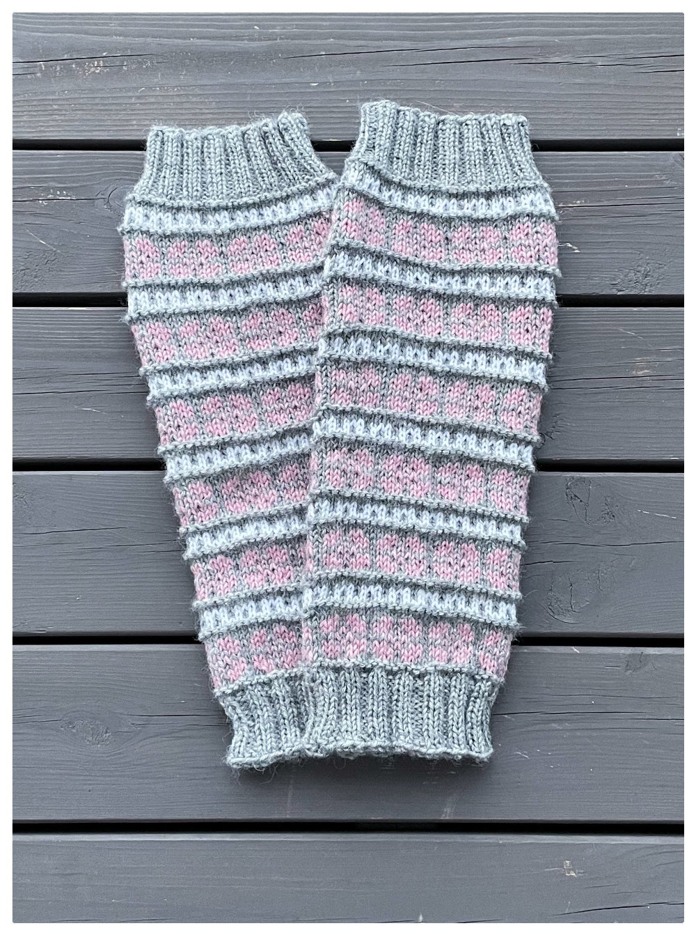 Tehdäänkö säärystimet keväthangille! Romanttisen harmaa-vaaleanpunaisena tai käytä jämälangat pois ja tee monivärisenä. Säärystimet menevät mukavasti rutullekin tarvittaessa ja ohjeesta löytyy koot kahdelle eri pohkeen leveydelle.