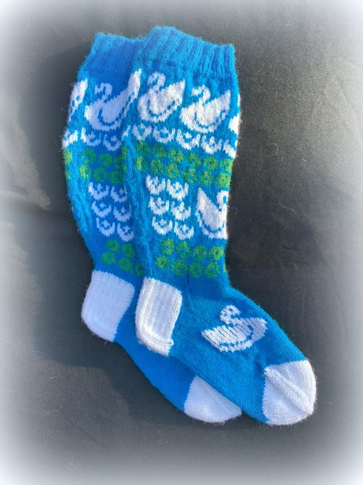 Joutsenlampi-kirjoneulesukat, neuleohje