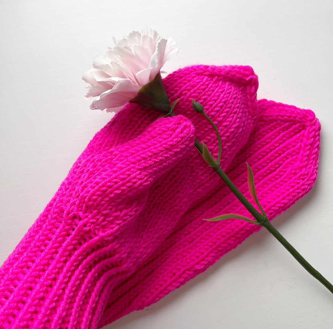 Puikot: Oman käsialan mukaan. Suositus Lana Gatto Maxi Soft langalle on 6 mm. Kuvassa olevat mallilapaset on neulottu 5 mm puikoilla.