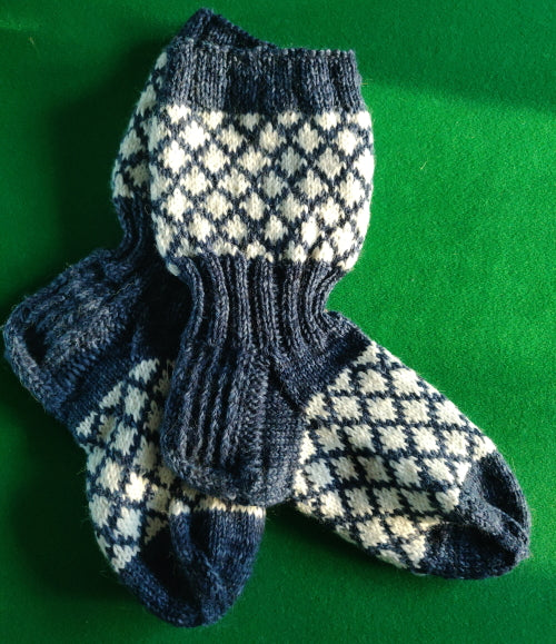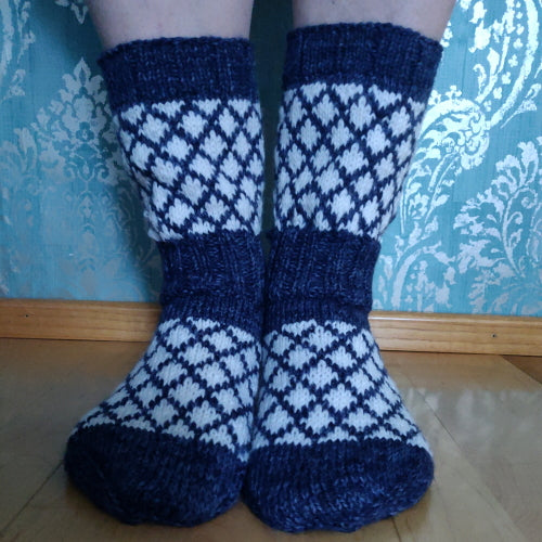 Kalastaja Eemelin-saapassukat, neuleohje (kuva Katja Makkonen)