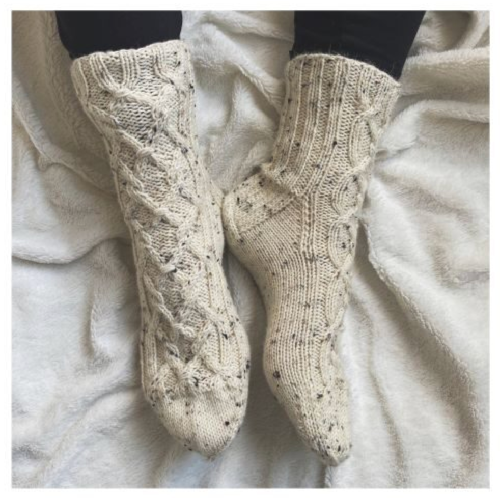 Ihanat Karkkipäiväsukat kolmessa koossa! Palmikkoneuleen mallikerta on helppo ja testineulonnan yhteydessä koukuttavaksi kehuttu.