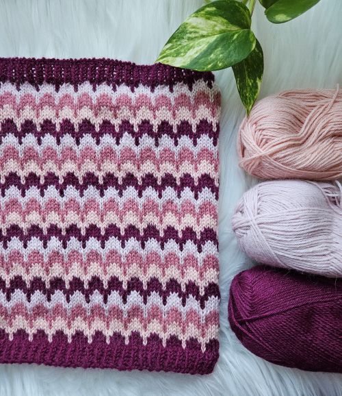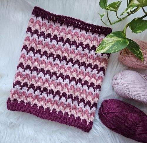Neuletiheys 10 x 10 cm = 29 s x 34 s (valmiin tuubihuivin mitat leveys 23 cm, korkeus 27cm)