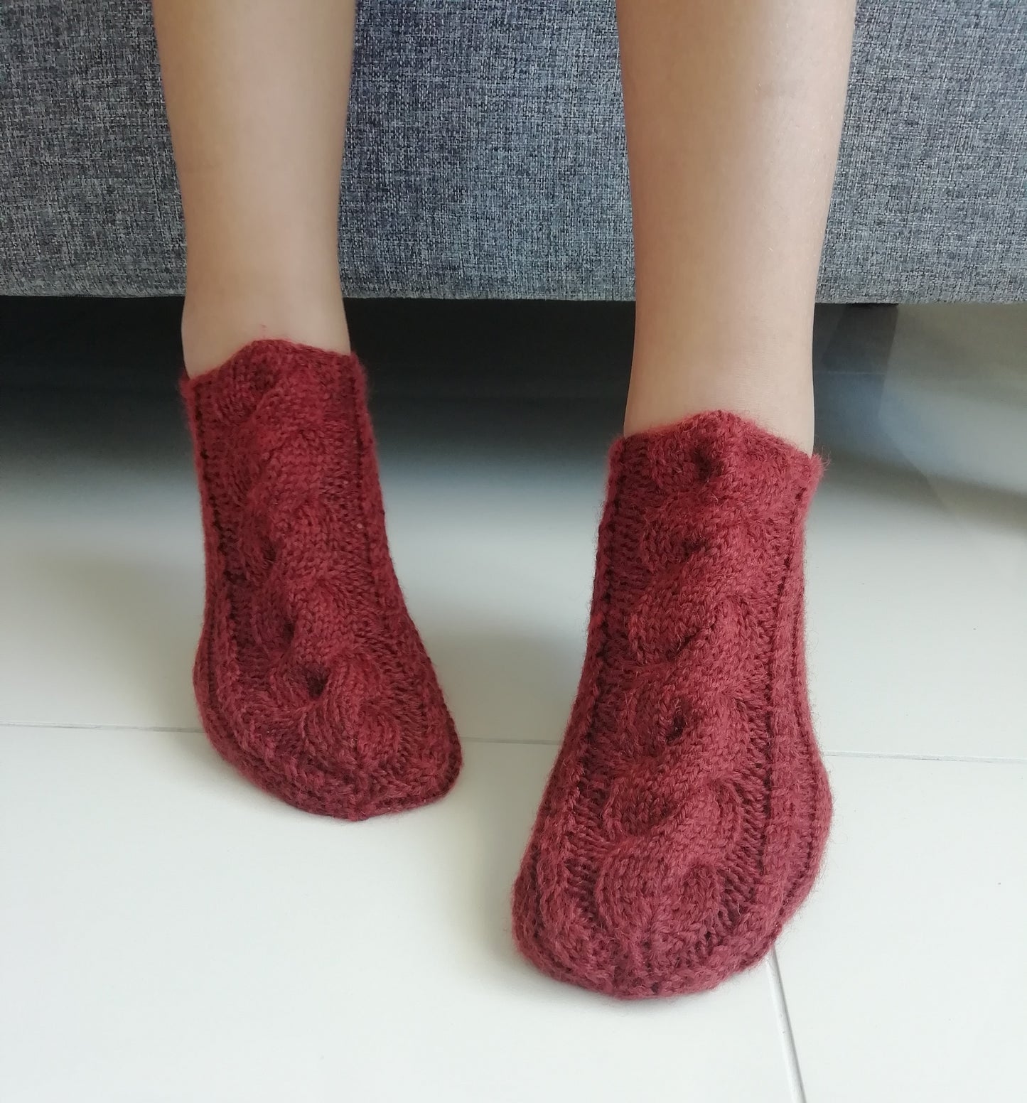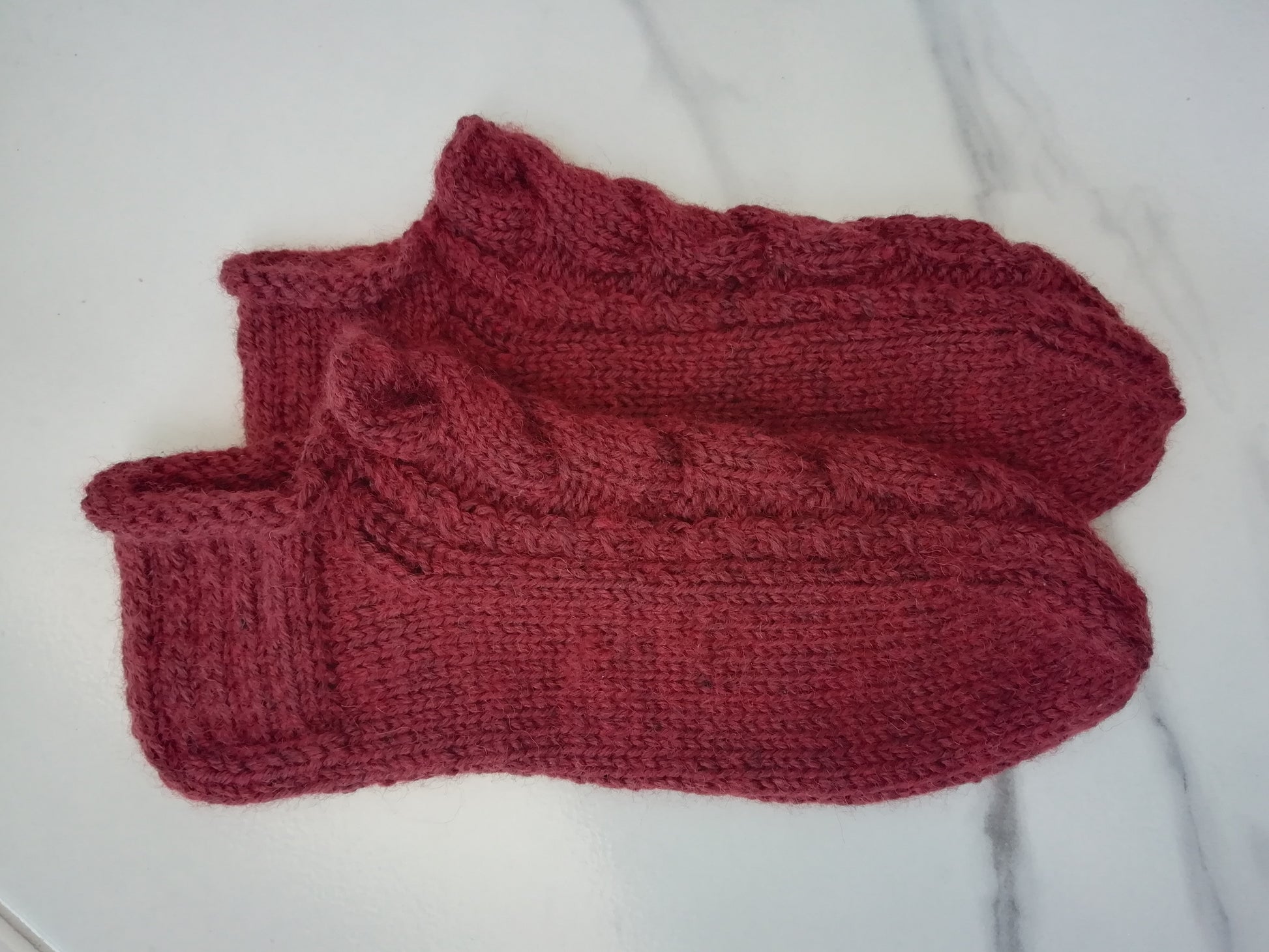Koko: 38/39. Koko pohjan pituus 25 cm. Kokoa voi muuttaa pienemmäksi/isommaksi sukan teräosaa lyhentämällä/pidentämällä.