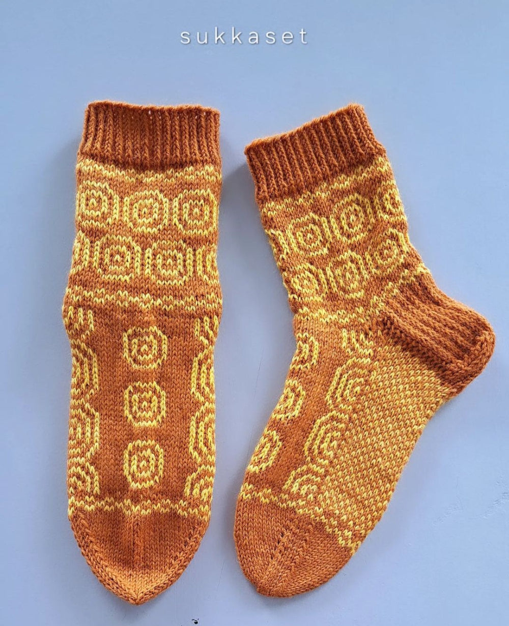 Hehkuvat kirjoneulesukat syksyn väreissä