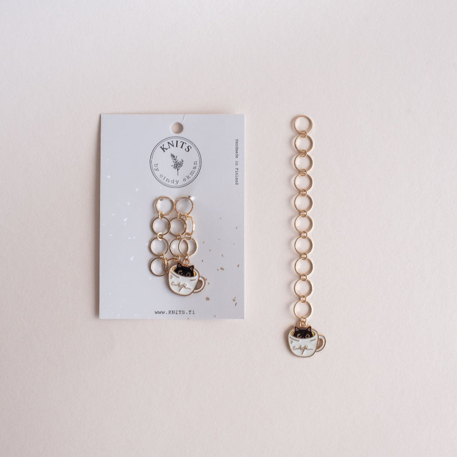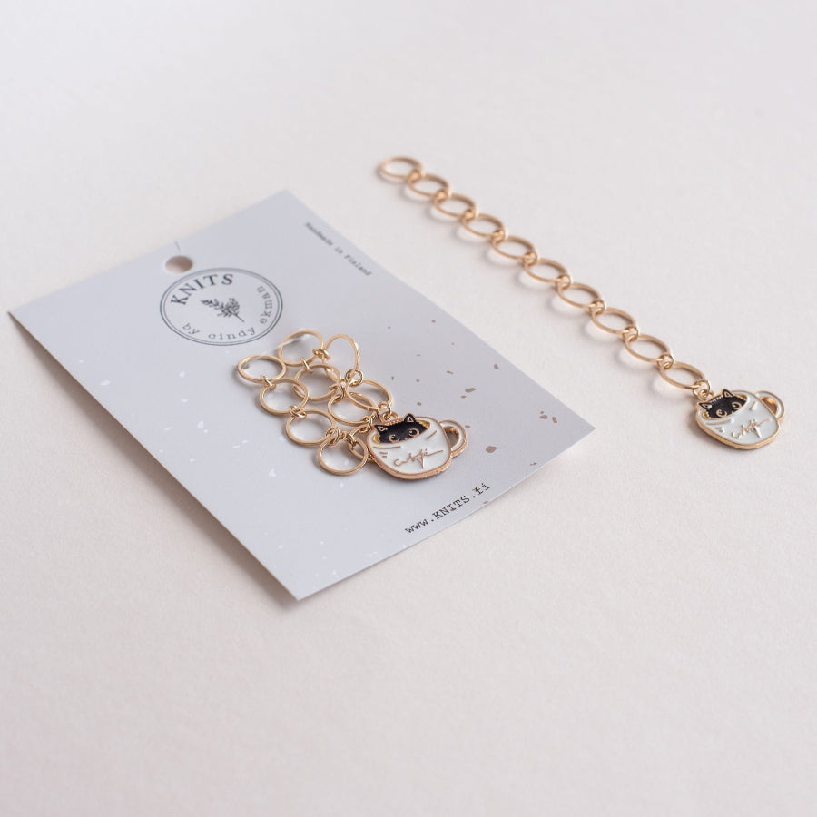 Aseta ensimmäinen rengas puikolle aloituskohdaksi, ja siirry seuraaviin renkaisiin neuloessasi eteenpäin. Voit siirtää rengasta jokaisella kerroksella laskemaan kerrosmäärää, tai käyttää sitä apuna kavennusten seurannassa. Käytännöllinen ja helppokäyttöinen apuväline!