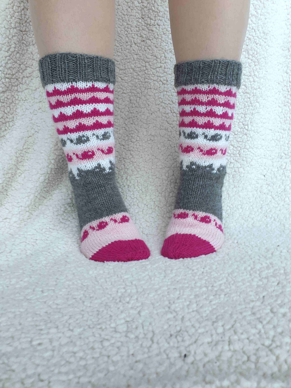 Kevätkissa-sukat, neuleohje (kuvat: Maarit O, @sweetsandsocks)