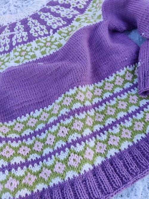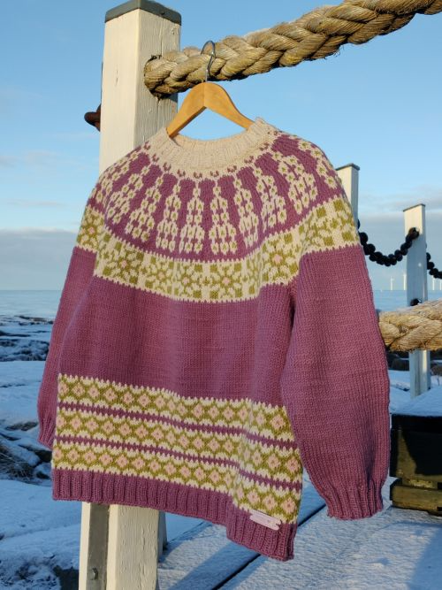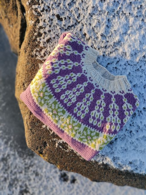 Saaristolaisneule, joka poistaa jäätävän tuulen ja takatalven ja toivottaa kevään tervetulleeksi saaristoon. Kevätluotsi neulotaan ylhäältä alaspäin suljettuna neuleena.