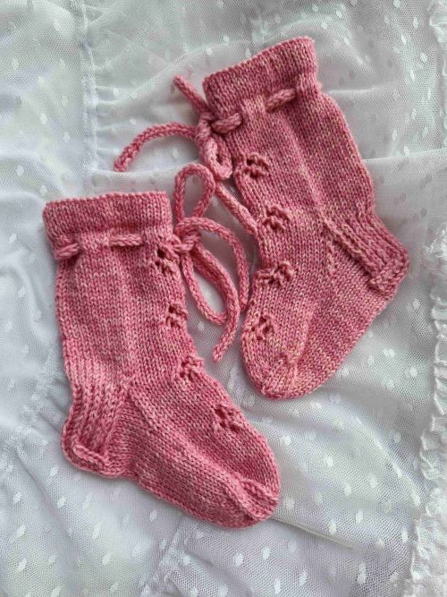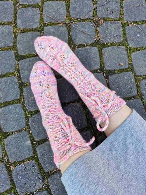 Kevätvillitys sukat ovat pitsisukat, joissa pienenä twistinä on varren nauha, muutoin sukka on helppoa pitsineuletta. Sukissa on neljä eri kokoa varren leveyteen ja ohjeella neulot vaikka koko perheelle sukat. Jalkaosaa on helppo neuloa pidemmäksi ja pitsikuvio jatkuu kärkeen asti isoimmissa kooissa. Ohje sopii myös aloittelijalle!
