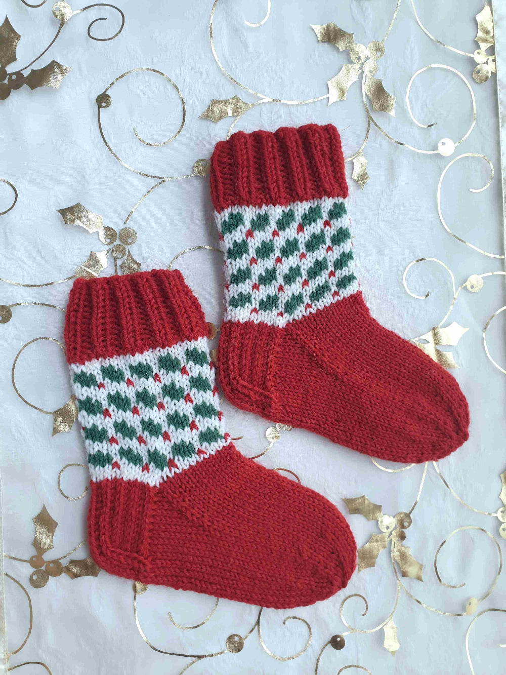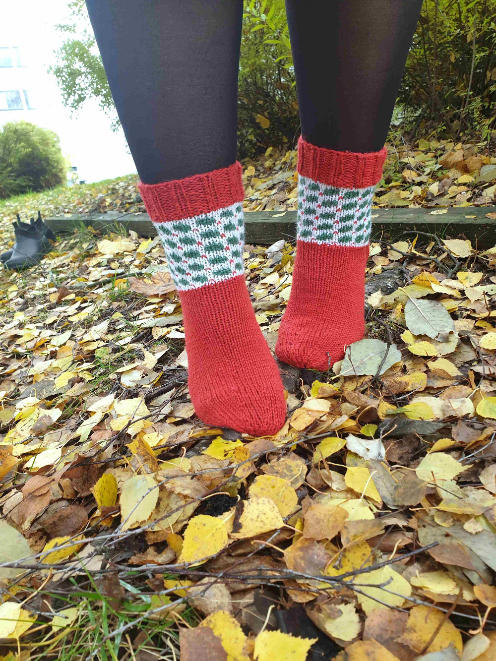 Koko: neljä kokoa noin: 24/25, 28/29, 39/40 ja 42/43 ja jalkaosaa voit neuloa joka koossa oman tai sukkien saajan jalan koon mukaan - halutessasi pidemmäksi tai lyhyemmäksi.